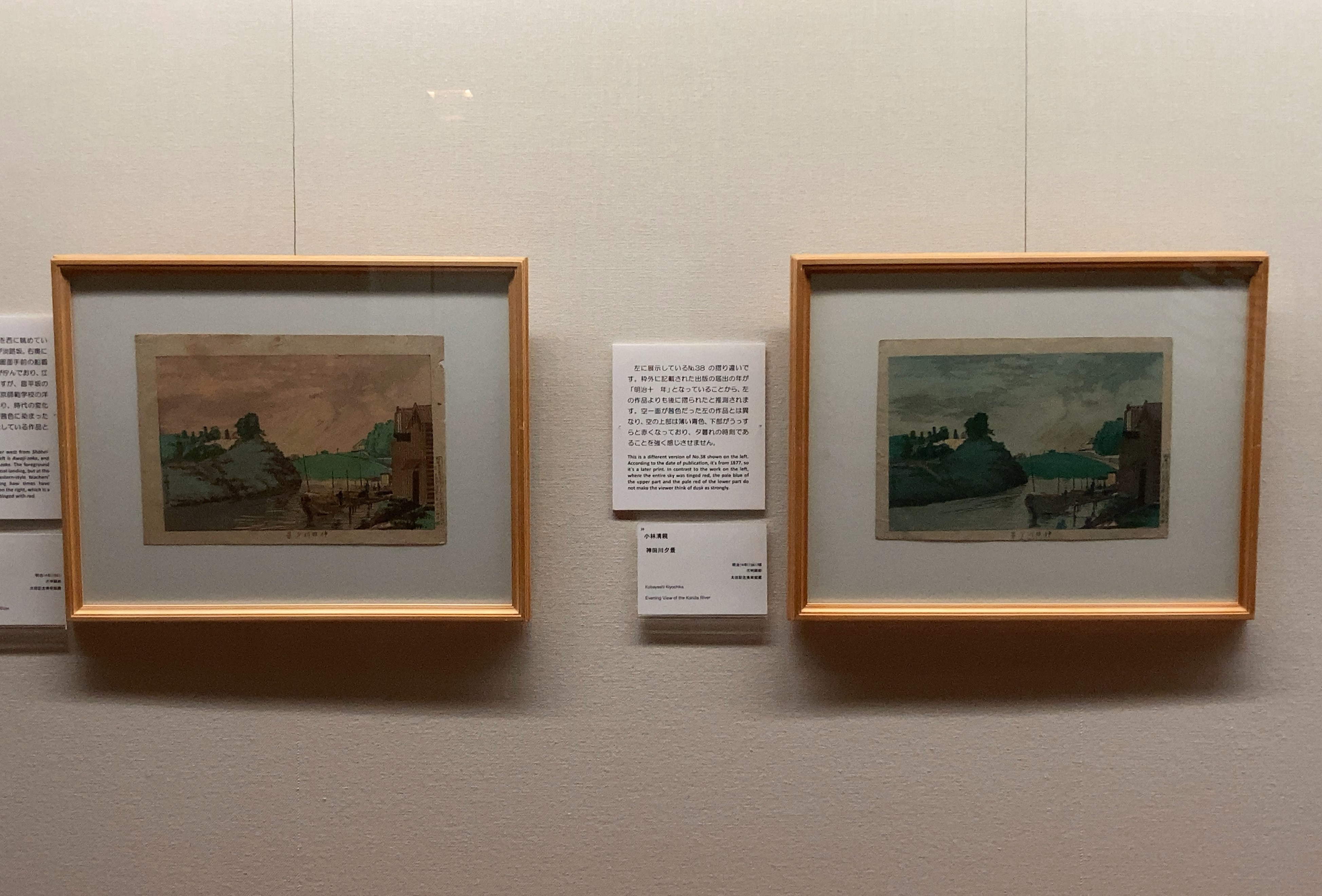 同じ版木でも色を変えた「摺り違い」や画面にニスを引いた「ニス引き」など、変わり種の作品を展示しているのも見どころ。ニス引きの作品は油絵のような光沢があり、西洋画に負けない迫真の表現を追求した清親らの苦心が伝わってくる。