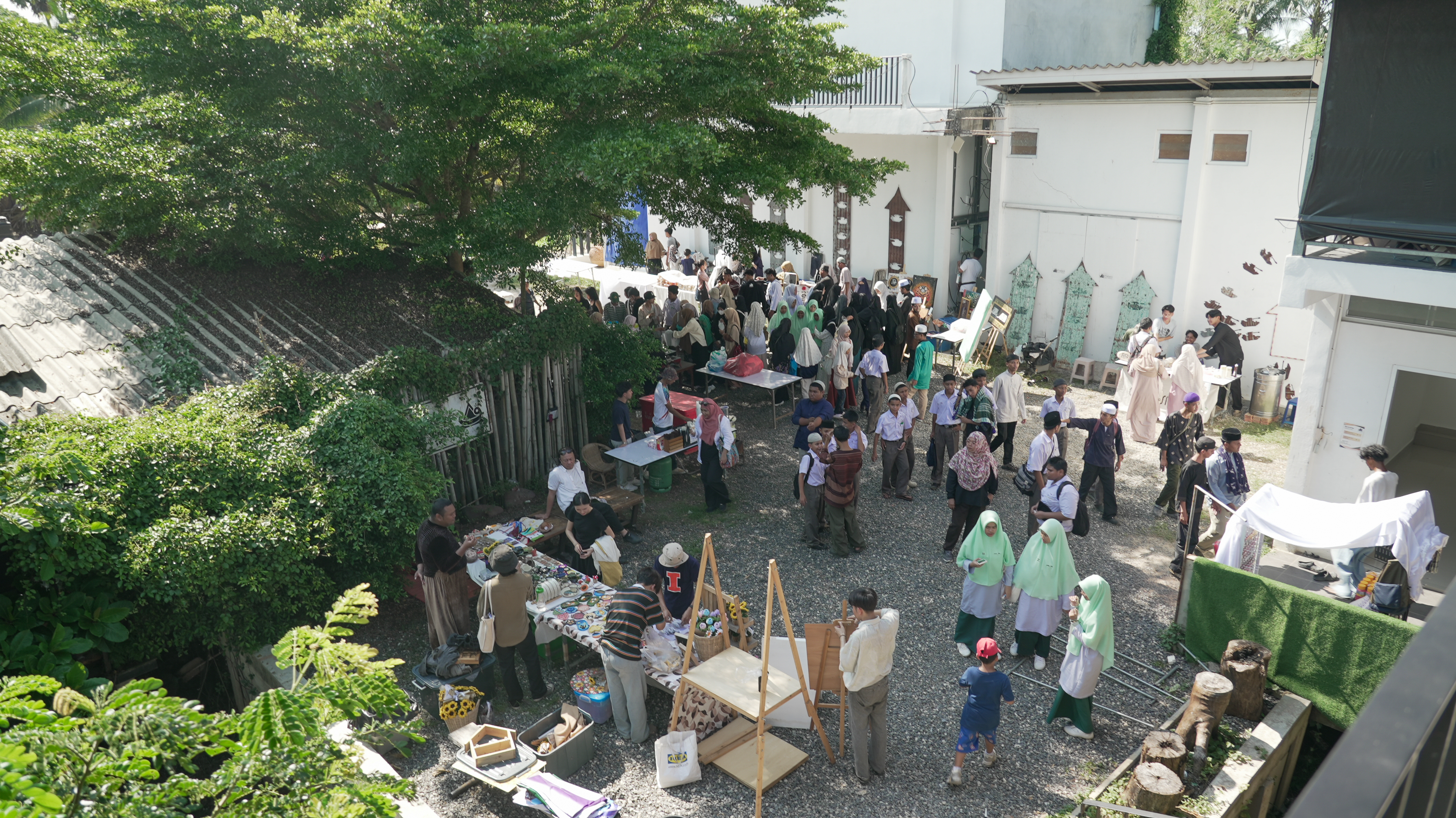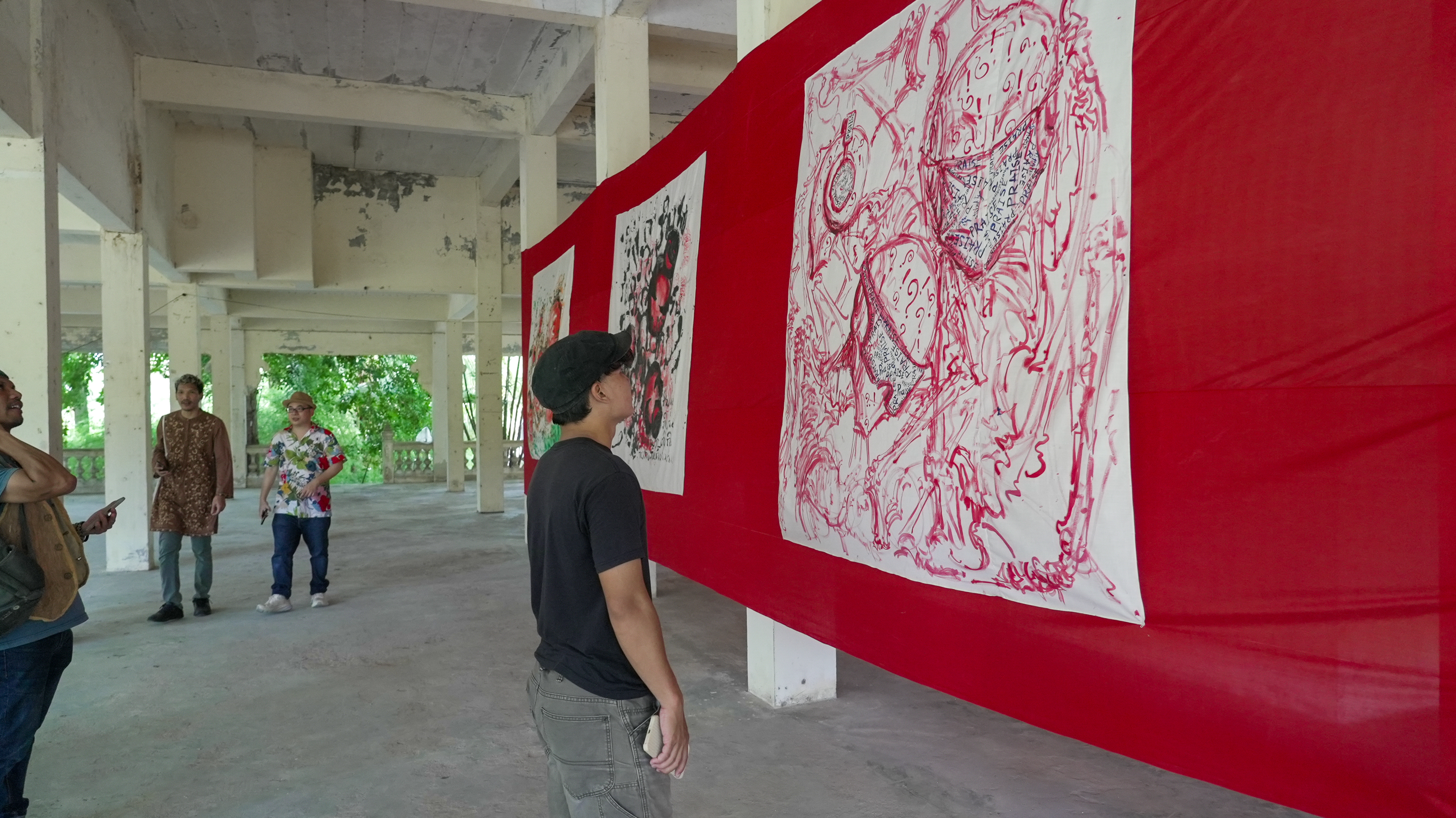 さらに彼らの凄いところはサバイバル能力の高さである。彼らはスペースの運営やイベント開催、自分の作品制作に至るまで、すべて自分の作品の売上げや働いた給料だけで賄っている。展示会場であるアートスペースさえも自力で建築してきた。筆者が2017年に初めてPatani Artspaceを訪れた際はたった2棟の建物しかなかったが、2024年現在、なんと6棟の立派な建築物ができており、3階建ての鉄骨ビルでできたアートスペースやレジデンススペース、2階建ての全面ガラス張りでできた展示ギャラリー、見晴らしの良いカフェ、イスラム教徒たちのお祈り部屋などが立ち並んでいた。これらを建築・設計・施工したのもすべて地元のアーティストで、建築費用もアート作品の売上げや給料で賄っている。行政や企業からの援助は一切受けていないのだ。