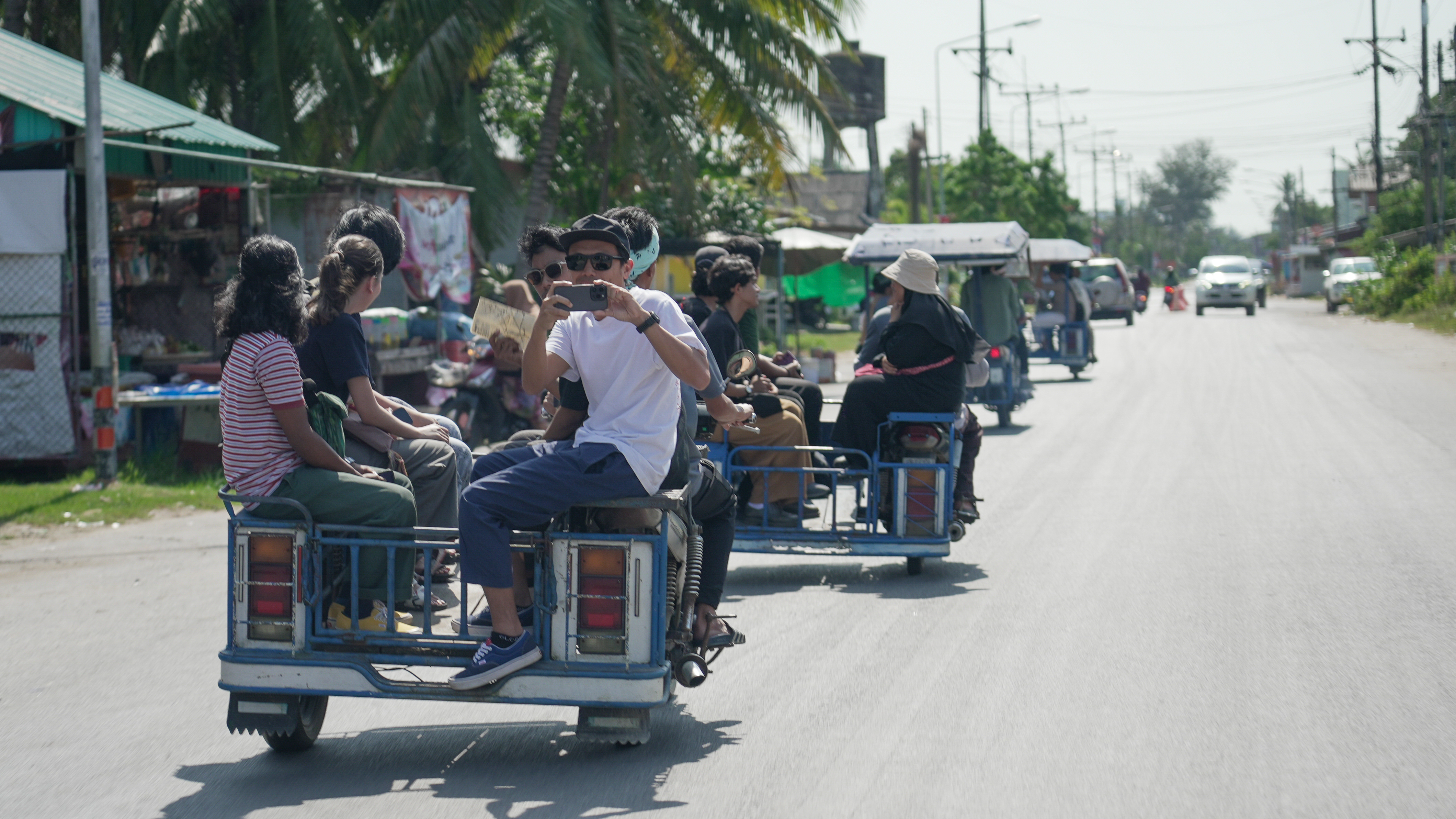 オープニングセレモニーでは、相乗りバイクに観客と参加アーティストが同乗し、点在する9つの会場を1日かけて巡るアートツアーが開催された。ツアー参加者のほとんどはタイ深南部の外から来ていた人々。物々しい軍の検問所をすり抜けて、スリルを味わいながら各会場を巡っていった。