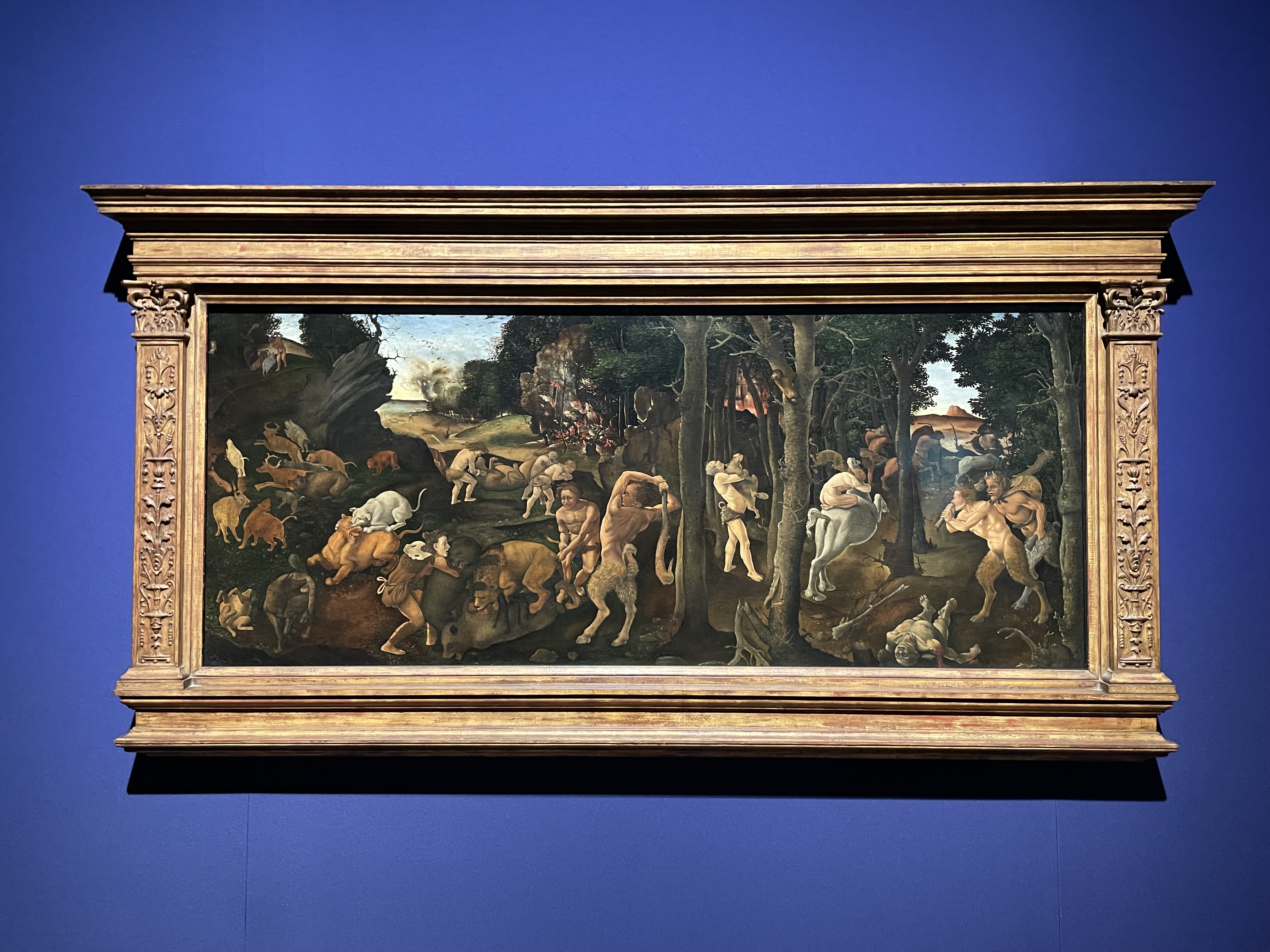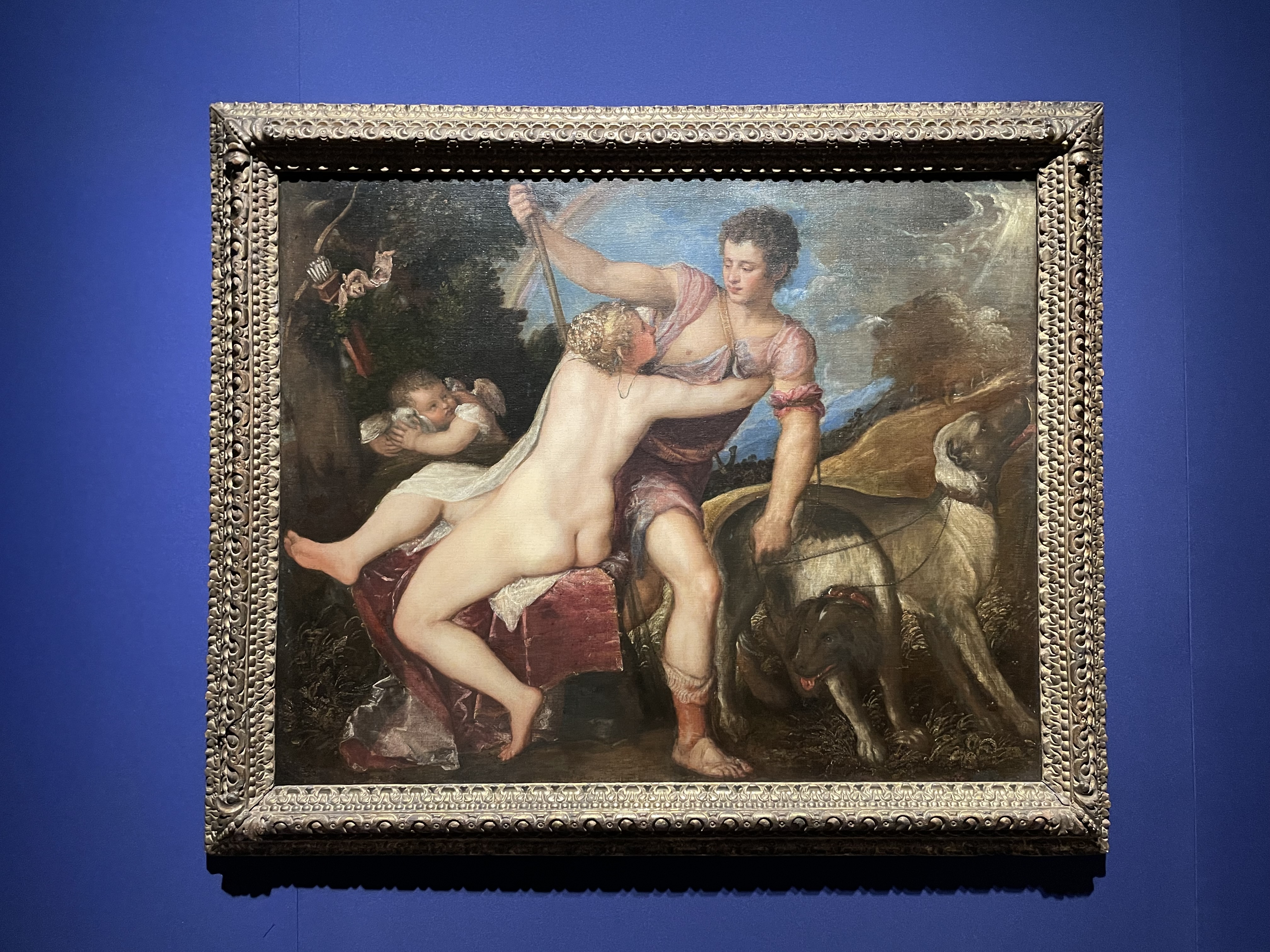 奥へと足を進めると、イタリア・ルネサンスの巨匠たちの作品が並ぶ。ラファエロ・サンツィオが20〜21歳頃に描いた《ゲッセマネの祈り》(1504)。風変わりな画家として知られるピエロ・ディ・コジモが、サテュロスやケンタウロスが暴れ回る騒々しい風景を描いた《狩りの場面》(1494–1500年頃)。ヴェネチア派を代表する画家ティツィアーノ・ヴェチェッリオが神話を題材に描いた《ヴィーナスとアドニス》(1550年代)。そしてヴェネチア派からも多くを学びながら、劇的な演出と縦に伸びるプロポーションといった独自の表現を獲得しスペインで活躍したエル・グレコ《羊飼いの礼拝》(1605–10年頃)。