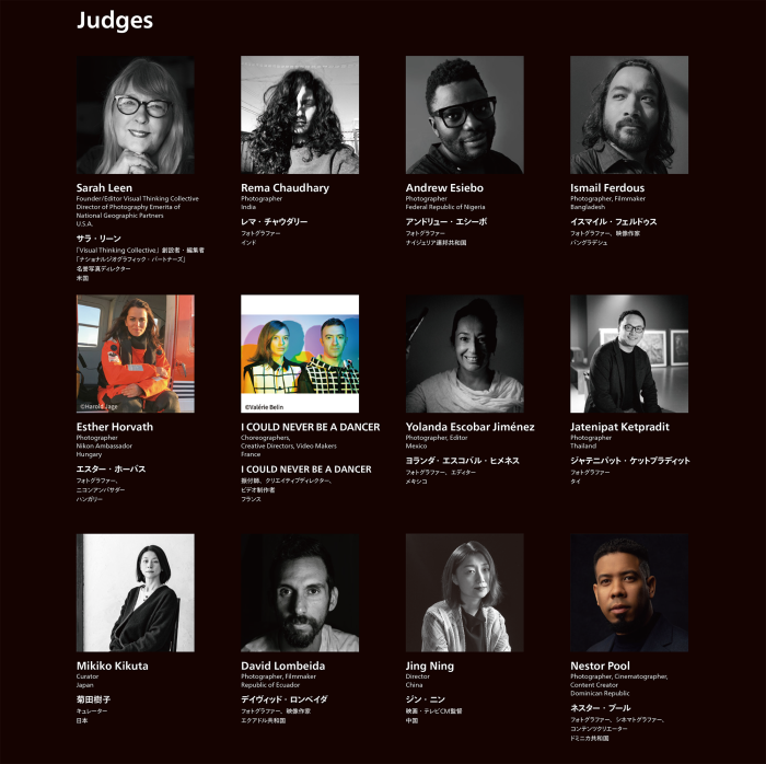 審査員も豪華だ。審査員長は「Visual Thinking Collective」創設者・編集者であり、「ナショナルジオグラフィック・パートナーズ」名誉写真ディレクターのサラ・リーンを筆頭に、日本からは、キュレーターの菊田樹子が参加。ほかにもインドやナイジェリア連邦共和国、バングラデシュなど、世界各国のフォトグラファーやコンテンツクリエーター、映像作家、エディターなど、幅広い経験や知識を有するメンバーが審査員に加わっている。