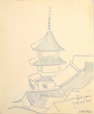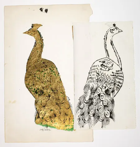 イラストレーター時代のウォーホルは、ドローイングに、当時としては珍しく金箔を使用している。これはウォーホルが1956年に世界一周旅行をした際に、日本を含むアジアにも訪れ、寺院で見た仏像の金色の輝きに魅了されたことがきっかけになったと言われている。