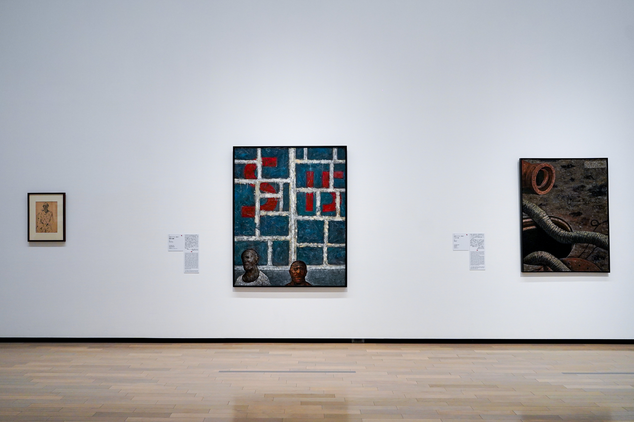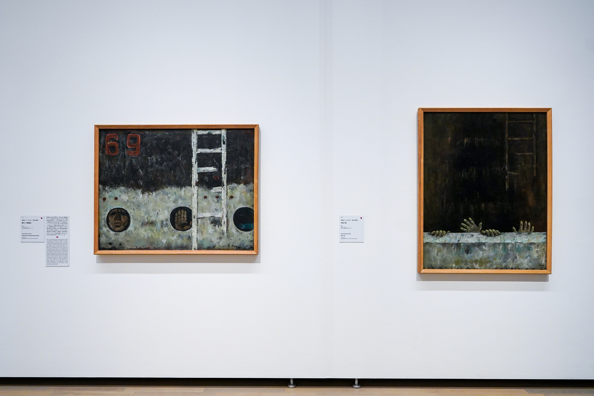 注目すべきは、日韓両国で近年再評価が進む曺良奎(チョ・ヤンギュ)だ。東京国立近代美術館の《密閉せる倉庫》(1957)と宮城県美術館の《マンホールB》(1959)が一堂に会し、韓国国立現代美術館からは初期ドローイング《人物》(1953)も来日を果たした。「曺良奎自身が日本で日雇い労働者として労働者階級の生活を送り、そうした生活の実感をもとに絵を描いた作家だ」と日比野は解説する。