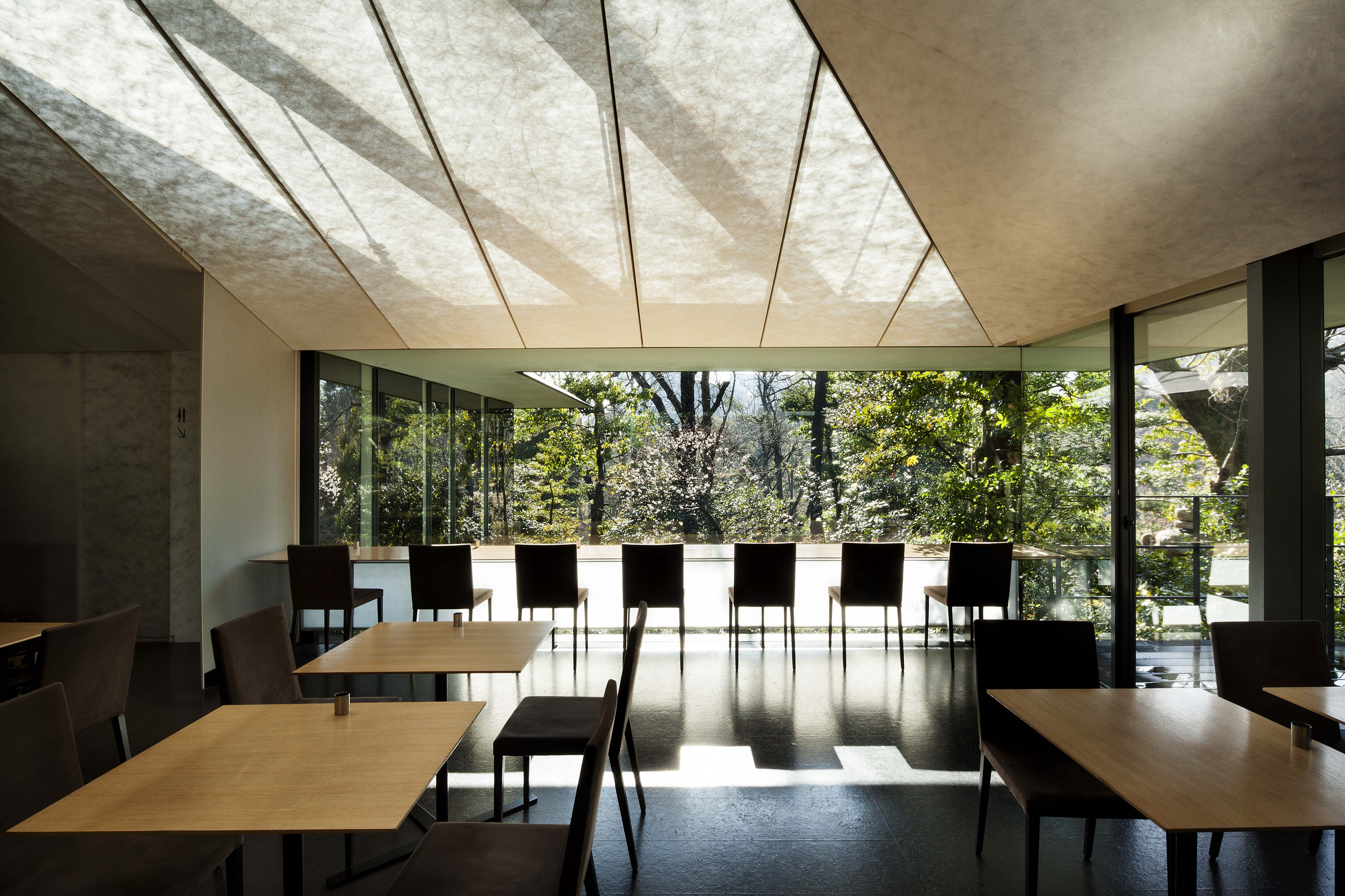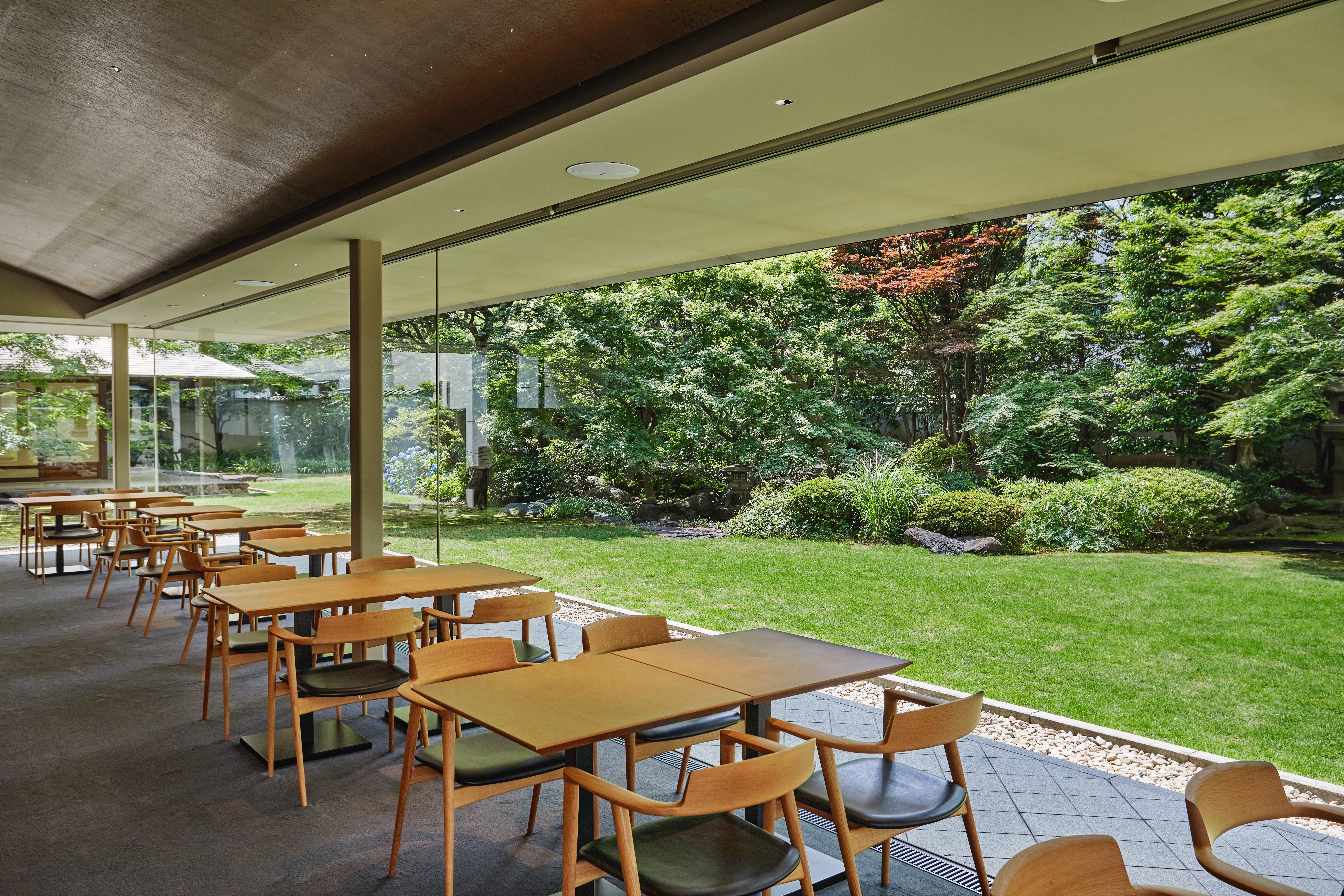 南青山の根津美術館は、1941年に開館した日本・東洋の古美術品コレクションで知られる私立美術館であり、2009年に隈研吾の設計によってリニューアルオープンした。表参道駅から徒歩圏内という都心立地でありながら、館内の「NEZUCAFÉ」では、まるで京都の庭園にいるような静寂を感じられる特別な空間を提供している。大きなガラス窓からは手入れの行き届いた日本庭園が一望でき、四季の移ろいを感じながらカフェタイムを過ごせる。なお、カフェは美術館入館者のみ利用可能で、7月から開催される「唐絵 中国絵画と日本中世の水墨画」展(7月19日〜8月24日)を機に訪れたい。