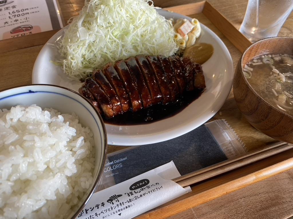 たらふく食べるぞ! という気合と共に入店します。地元の甘口醤油がベースのタレに、外側を少しカリッとさせた柔らかいトンテキと、山盛りキャベツをからめて食べます。その横にそっと添えられているマカロニサラダにも地元の美味しいかまぼこが入っていて嬉しいです。名水の里 黒部産のコシヒカリと、富山名物とろろ昆布の味噌汁でほっこりする、幸せの無限ループです。