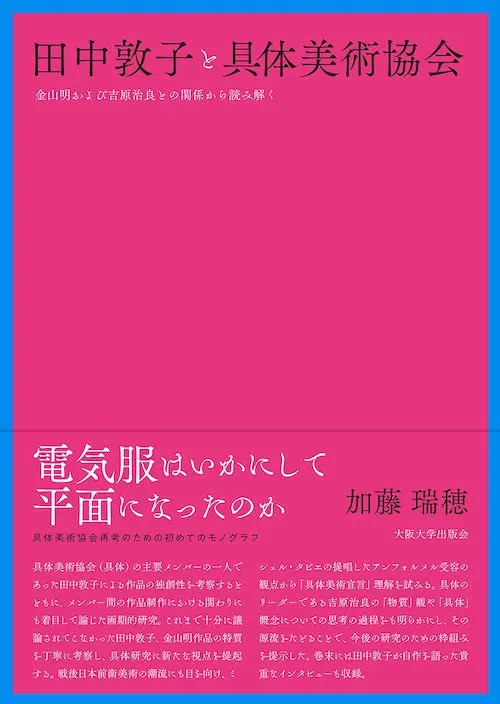 2022年〜23年1月まで国立国際美術館と大阪中之島美術館の2館共同で大規模回顧展が開かれるなど、再評価が進む戦後の前衛美術家集団「具体美術協会」。その主要メンバーのひとりとして知られ、具体を去った後も国際的に活躍したアーティストが田中敦子だ。代表作《電気服》などを制作した田中の独創性を、具体のリーダーであった吉原治良、具体メンバーでのちにパートナーとなる金山明という二人の作家との関わりから論じる画期的な1冊。巻末には田中のインタビューも収録。筆者は芦屋市立美術博物館学芸員を経て、現在は大阪大学総合学術博物館招へい准教授を務め、具体の研究を続けてきた加藤瑞穂。