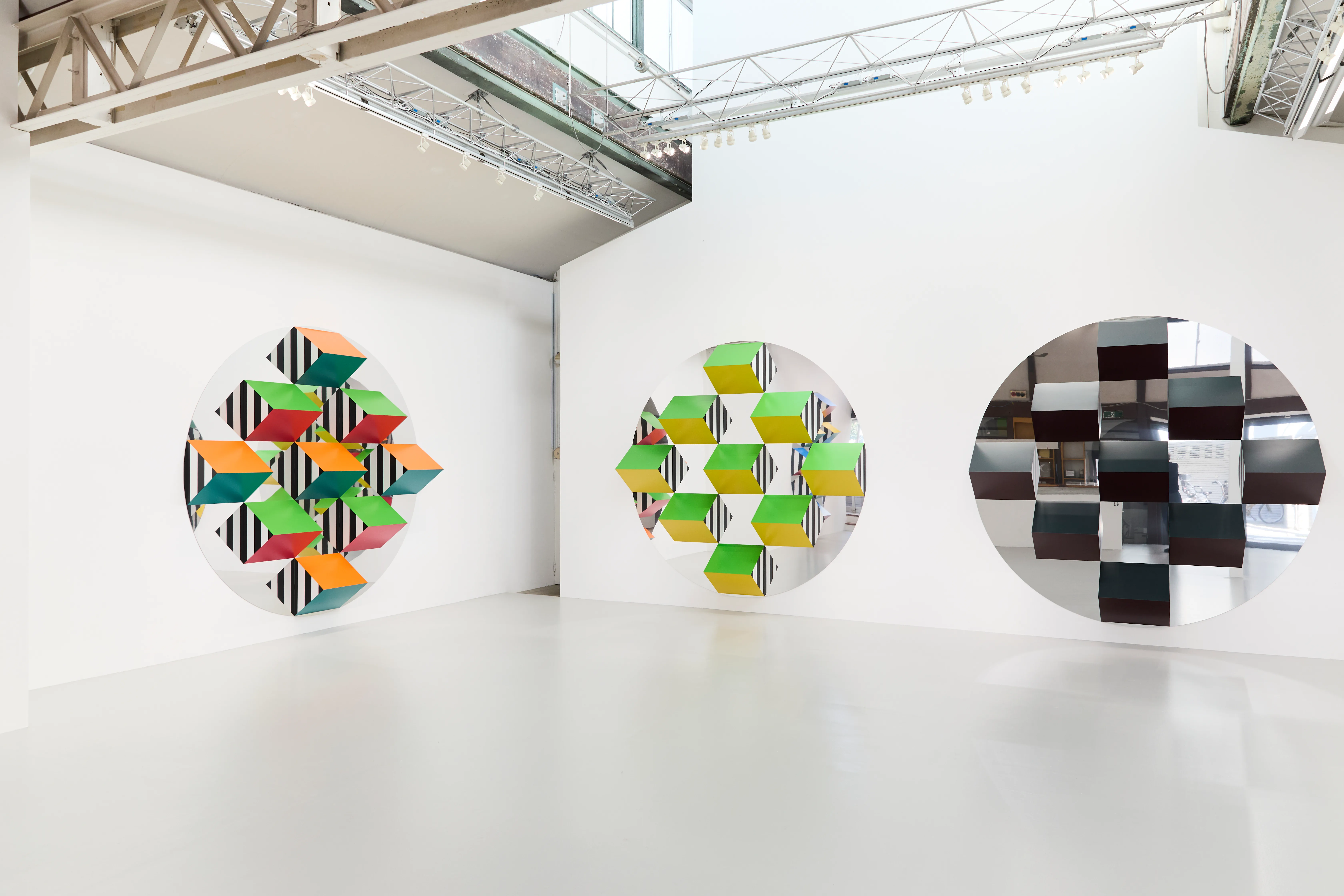 そのビュレンの最新個展「Third Eye, situated works - 知覚の拡張ーそこにある眼差し」が、SCAI THE BATHHOUSE(東京・谷中)で開幕した。新作《Prismes et miroirs : Haut-relief》全6点で構成される本展では、プリズムと鏡面を組み合わせたレリーフが、鑑賞者の前方と背後を同時に視界へ引き込む。
