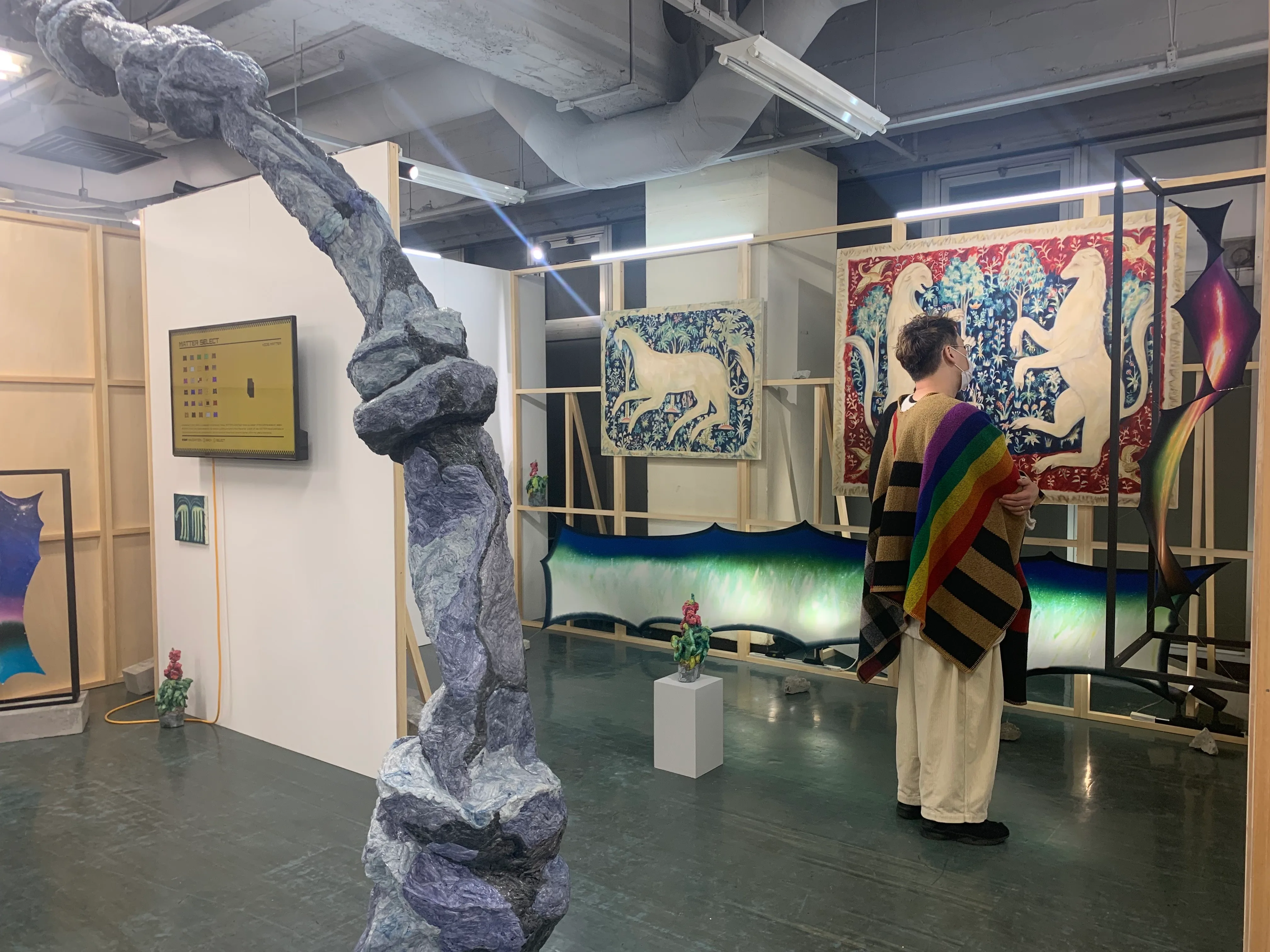 会場は東京国立近代美術館のすぐ、北の丸公園内の科学技術館。同展は、2020年に開催されたアートフェア「EAST EAST_Tokyo」を大幅リニューアルしたイベントだ。会期中には、科学技術館での展示に限らず、渋谷や新宿の街頭展示や、ライブハウスやクラブでのイベントなど、多数のオフサイトプログラムも予定されており、合わせてチェックするとよいだろう。このレポートでは、科学技術館での展示の様子を、かいつまんでお届けする。