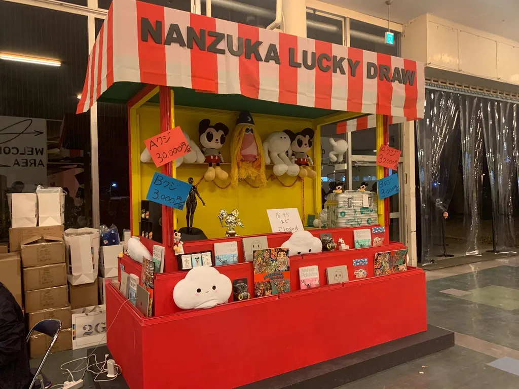 会場入口のすぐ横には、NANZUKAによるプロジェクト「NANZUKA LUCKY DRAW」が。NANZUKA所属アーティストの関連商品が当たるくじ屋だ。