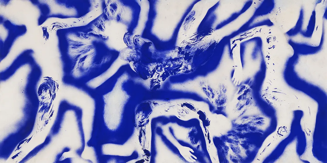 全身が青い人体彫刻など、単色の作品で知られるイヴ・クライン。彼を中心に、イタリアの空間主義運動や日本の具体などの同時代の作家、さらに現代の作家を加えて、彼らの芸術に共通する「非物質性」というテーマに主眼を当てる展覧会が、金沢21世紀美術館にて開催中だ。気候変動やウィルス、インターネットなど無数の「見えないもの」が起こす渦中で生きる私たちに、いま、ここにないものを感じ、想像し、不確かな現在を乗り越えていく喜びと力を示すことを試みる。フォトレポートはこちら。