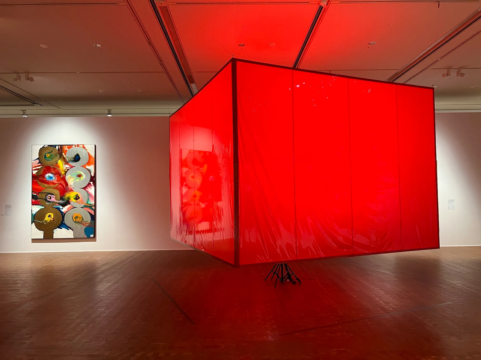 大阪中之島美術館「すべて未知の世界へ ー GUTAI 分化と統合」展示風景より。中央は田中敦子《作品》(1961、大阪中之島美術館蔵)