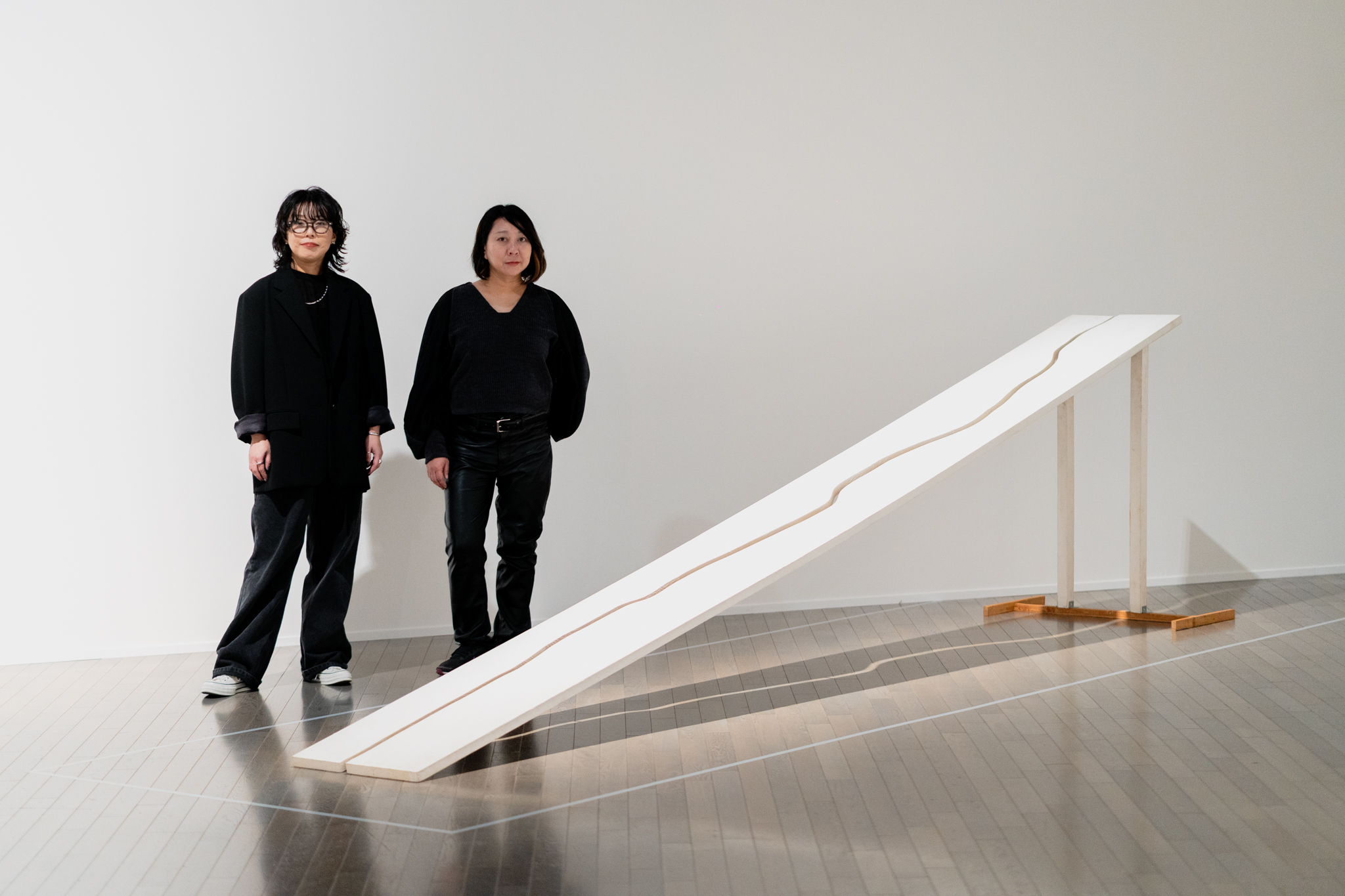 左から、中嶋泉、岡田裕子 「アンチ・アクション 彼女たち、それぞれの応答と挑戦」(東京国立近代美術館)会場にて