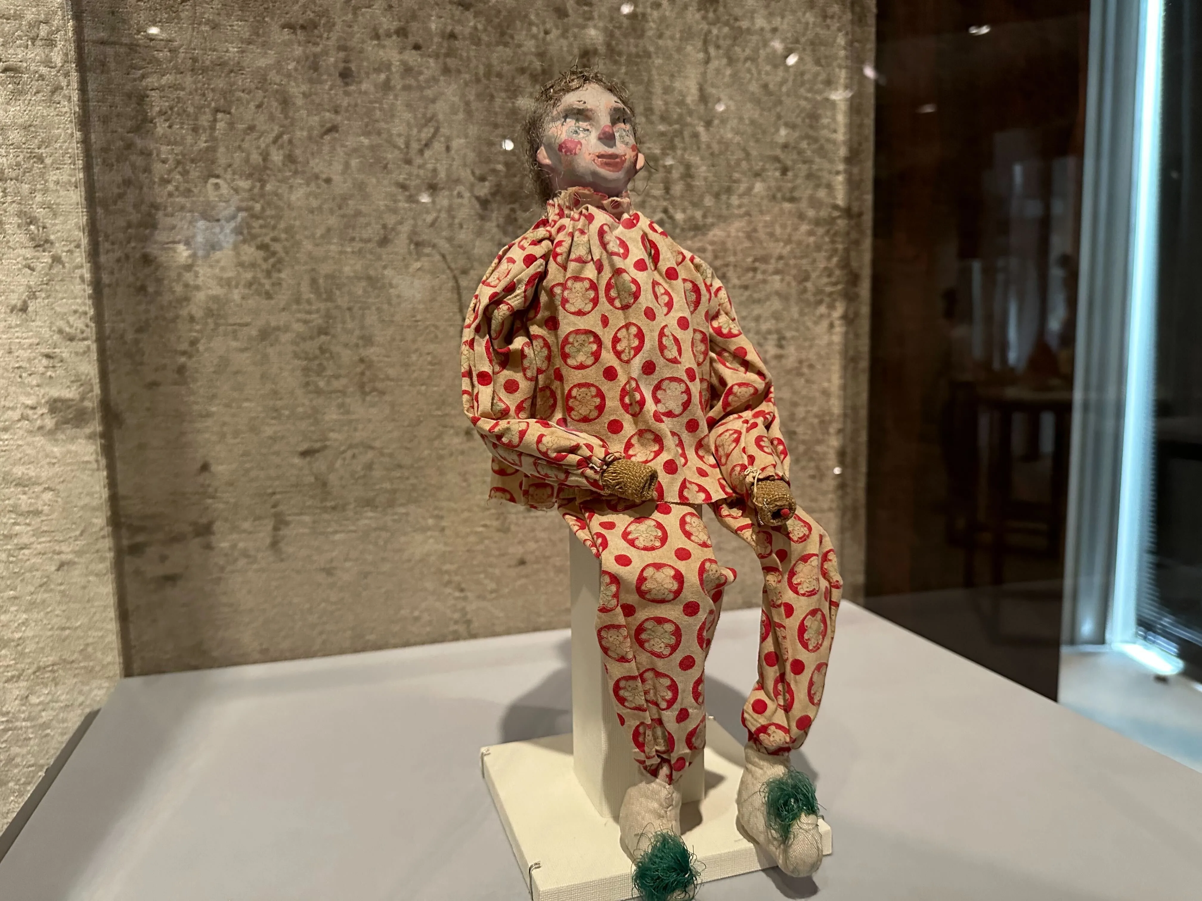 展示の後半では、愛らしさや、人形と人間のあいだの親しみを感じさせる作品が並ぶ。美人画でも知られる竹久夢二によるピエロの人形、 群馬県桐生市・祇園祭の山車人形として使用された松本喜三郎《素戔嗚尊》(1875)。あるいは商業の分野で活躍したマネキンも、生活の近いところにある人形のバリエーションと言えるが、島津製作所創立者の孫であった島津良蔵と、彼のもとに集まった彫刻家の荻島安二と向井良吉が制作した芸術性の高いマネキンは、彫刻と人形のふたたびの接点を示すだろう。