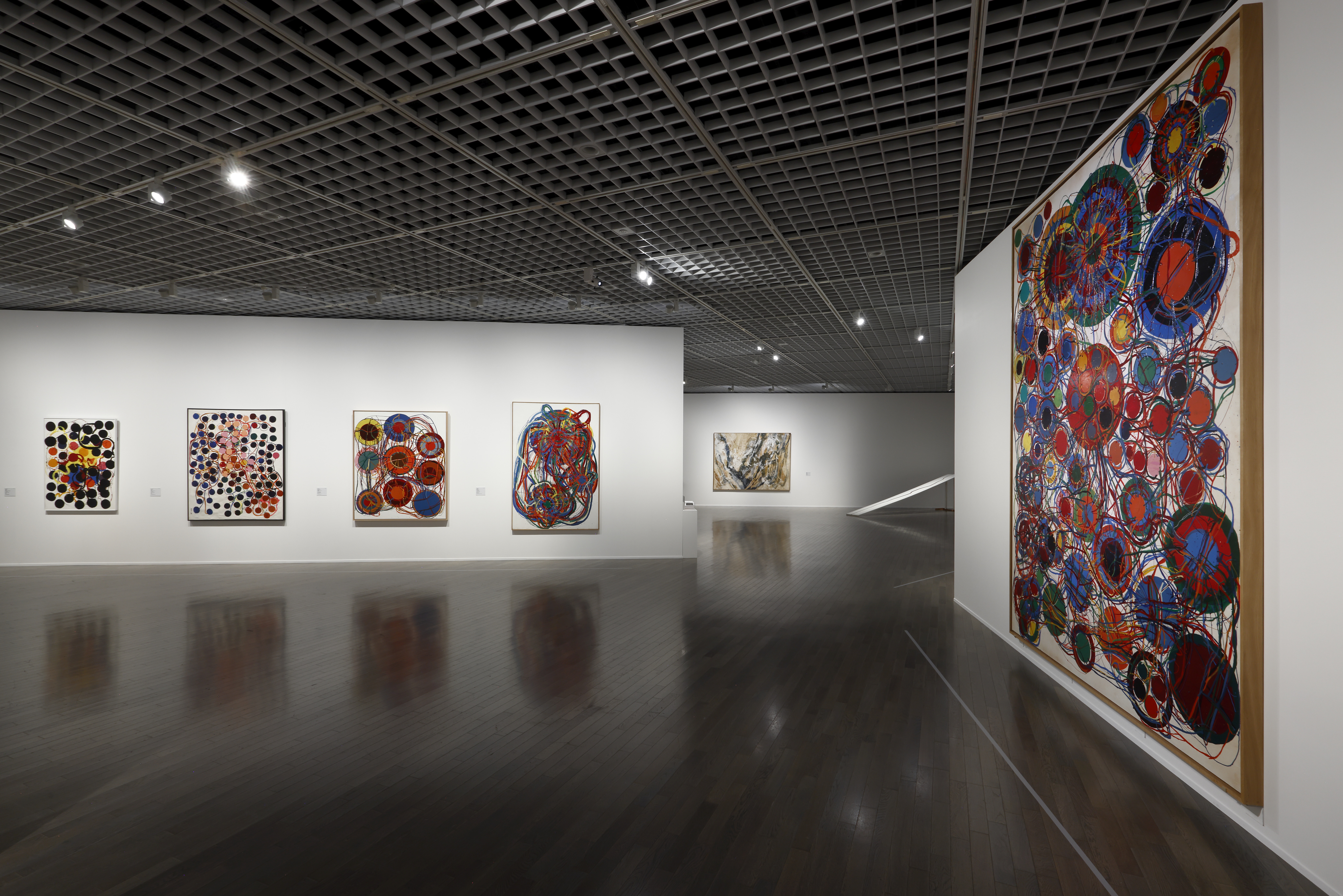 敗戦直後の女性解放や女性の社会進出の機運の高まりと呼応するように、1950〜60年代には多くの女性作家が活躍した。しかし、その多くは時代が下るにつれて美術史のなかで十分に語られなくなっていった。本展は、ジェンダー研究の視点から日本の戦後美術を再検討した中嶋泉の著書『アンチ・アクション』を手がかりに、当時の女性美術家たちの創作活動を見直す試みである。いわゆる「アクション」の時代に対し、別のかたちで応答しながら独自の抽象表現を展開した草間彌生や田中敦子を含む14名の作家をフィーチャーし、約120点の作品を紹介。半世紀以上を経た現在の視点から、彼女たちの実践を再考する機会となるだろう。これまでの巡回先レポートはこちら:豊田市美術館、東京国立近代美術館。
