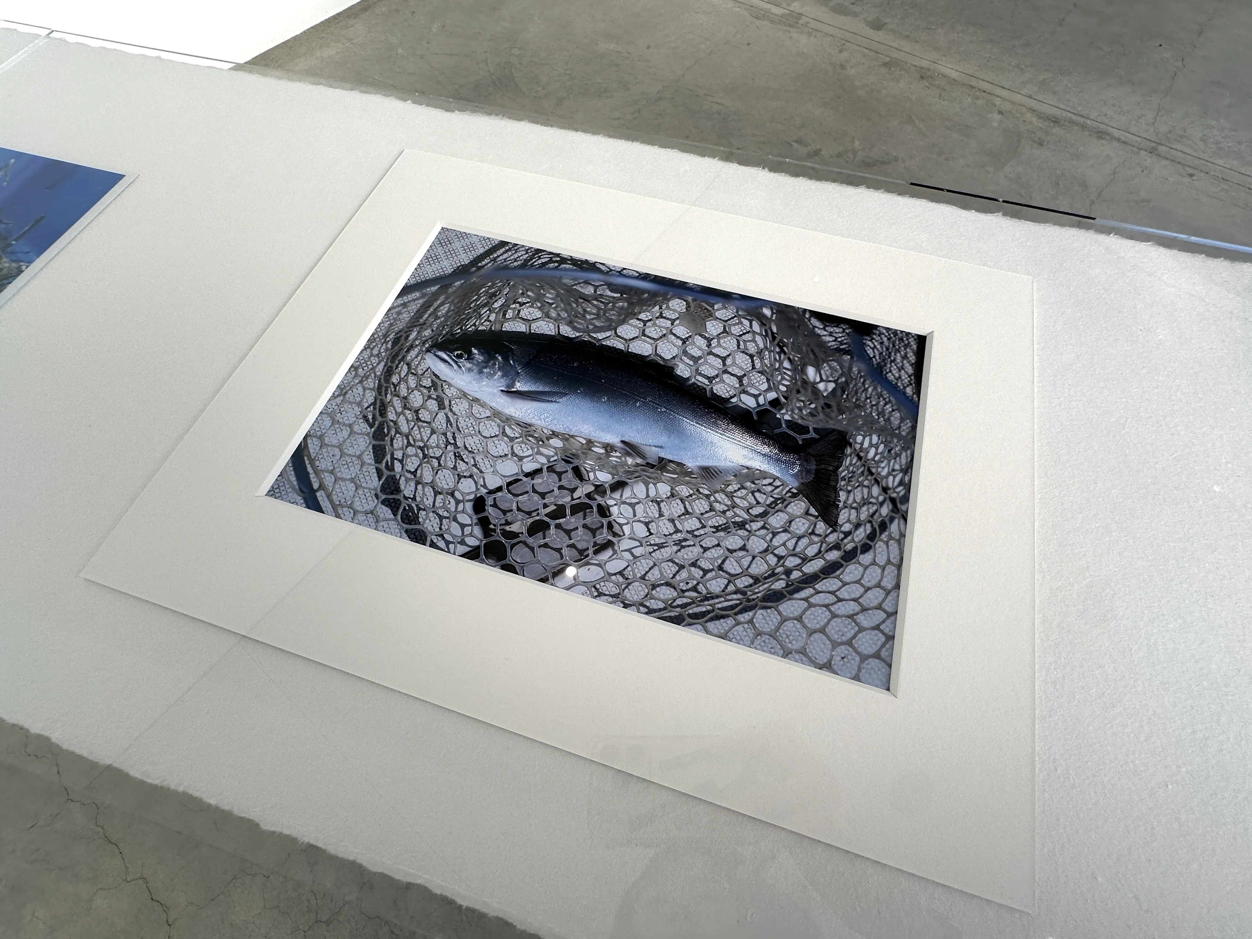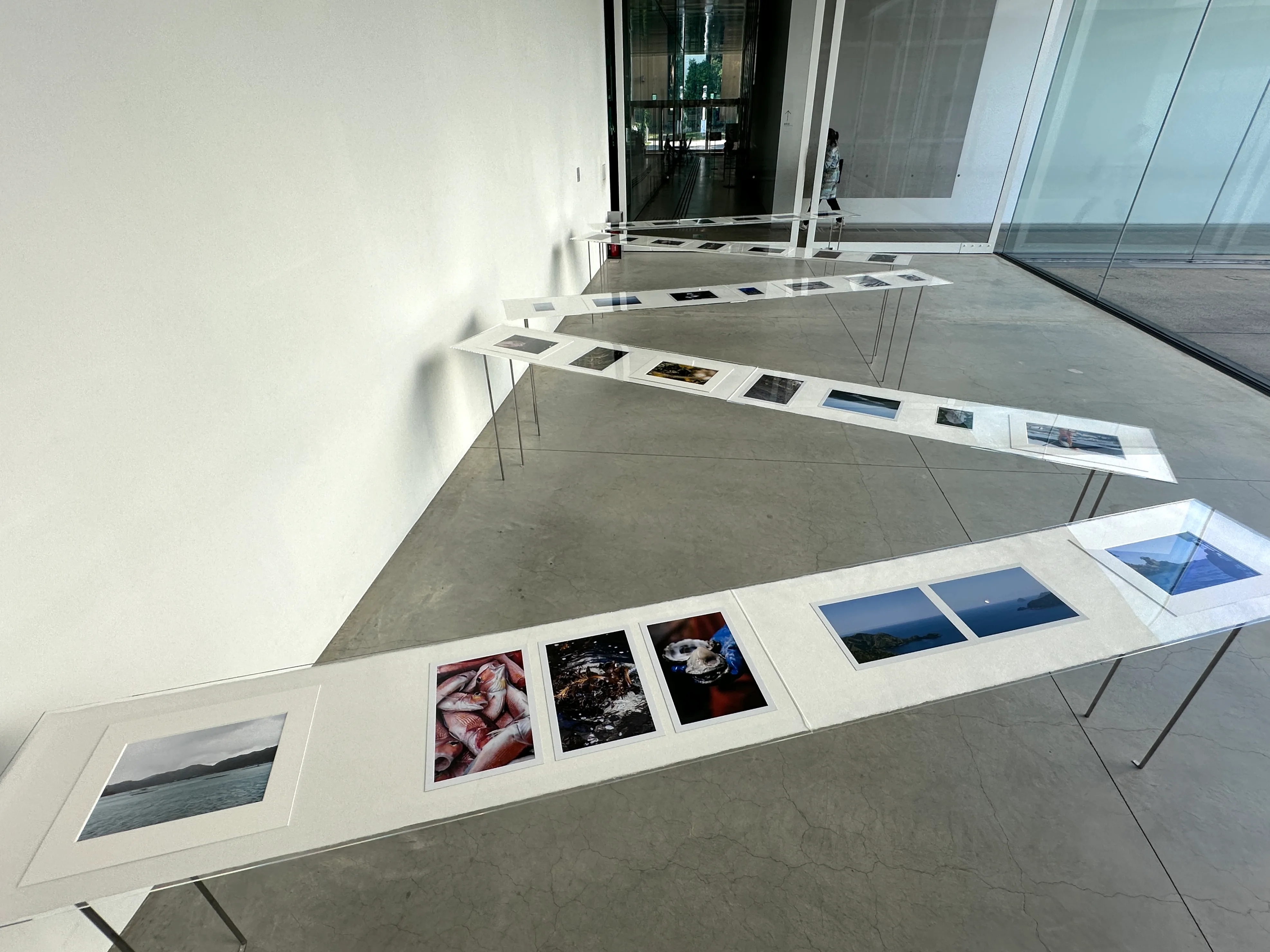 移動にまつわる作品シリーズ「Passes」(2024)を展示しているのは、アーティスト、写真家の八木夕菜。福井と京都を結ぶ「鯖街道」と呼ばれる道筋を、料理家の中東篤志とともに訪ねた。豊かな自然、写真越しにも磯の香りが漂ってきそうな光景を収めた写真の数々は、直線的ではない展示方法と相まって鑑賞者の思索を促すような仕掛けがある。
