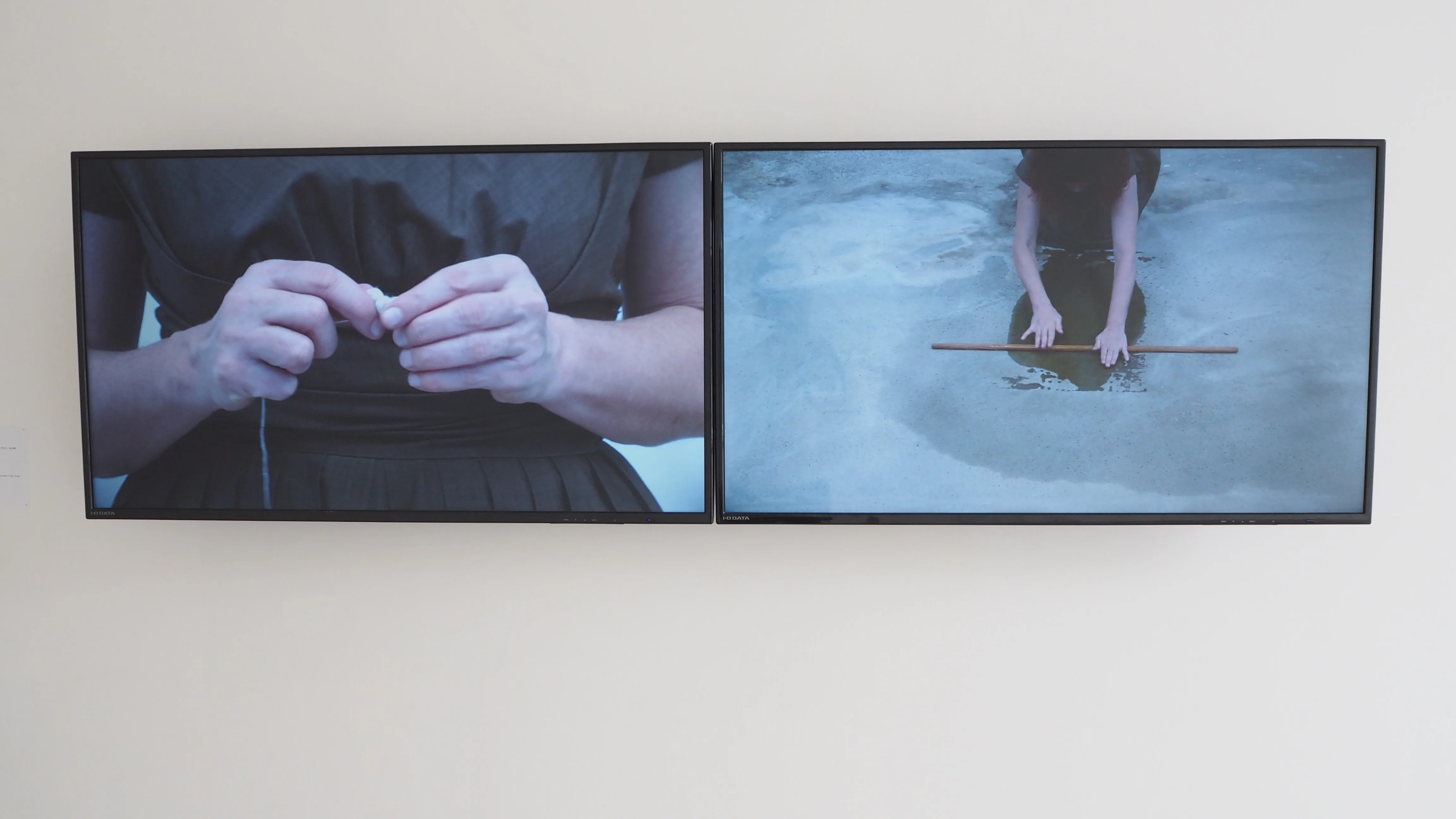 フェミニズム、アイデンティティ・ポリティクス、翻訳などへの関心にもとづく作品を手がけてきたユージニア・ラスコプロスは、《作り直すまたは言及する》(2010)を展示。2つの映像からなる本作について「注意を払う、新しく歴史を作り直すというふたつのメッセージがある」と話す。作家と結びつきの強かった祖母のカギ編みをほどき、線にもどしていくことで、祖母の歩み、行いをたどって歴史を編み直しているのだという。