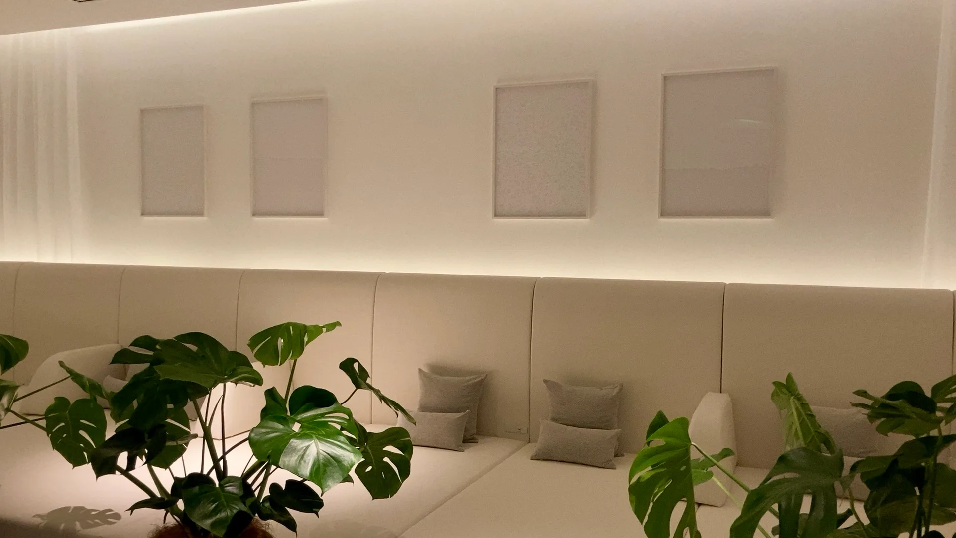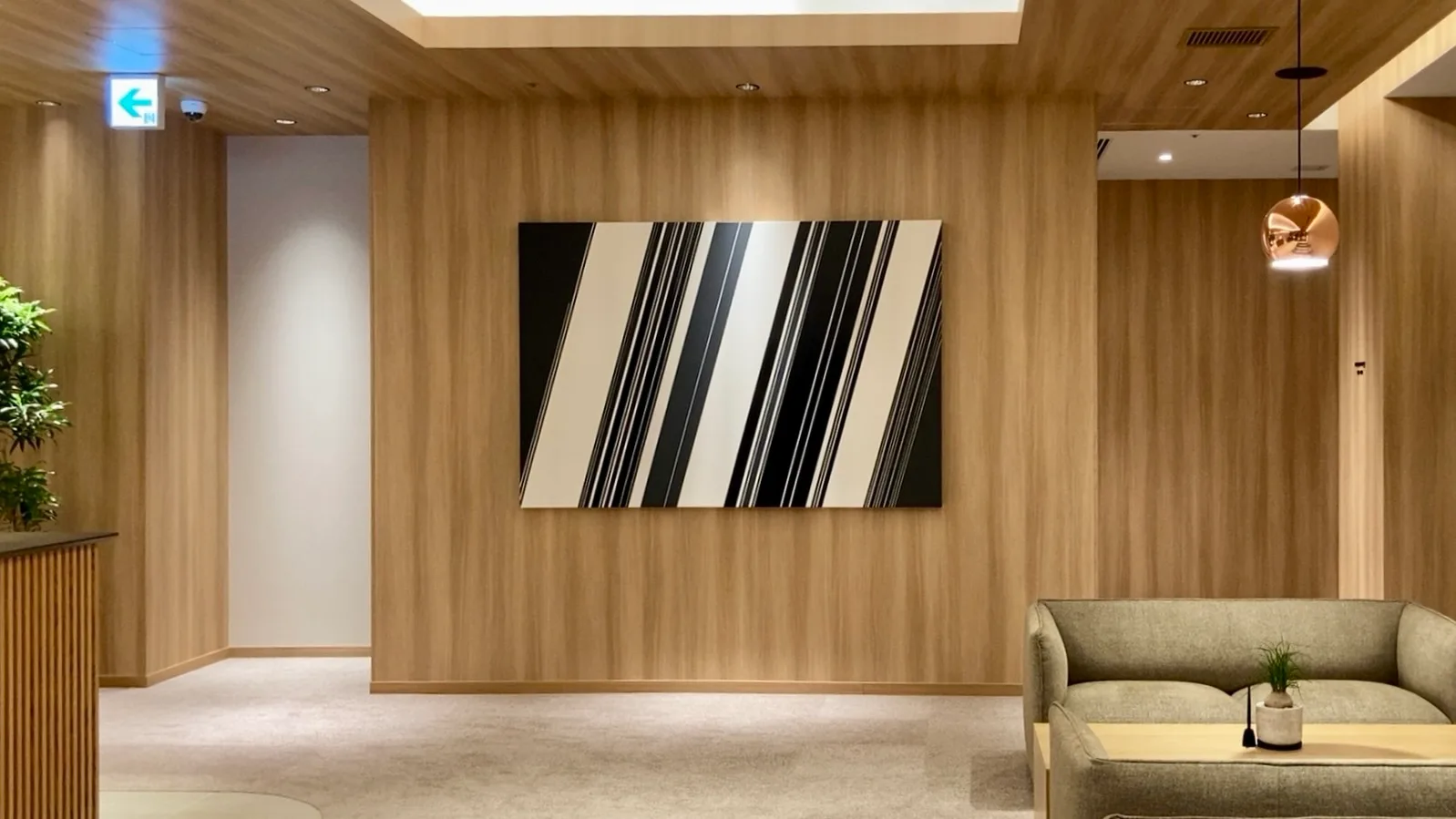 「RR Conditioning & SPA」のメンバーラウンジ。展示されているのは名和晃平「Moment Photography」シリーズ