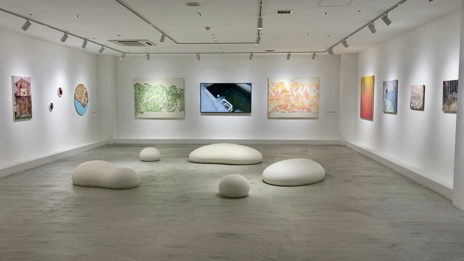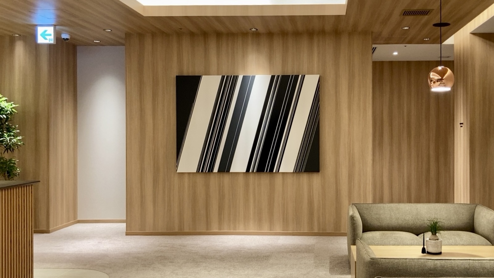 ロビーでは、インク顔料を使い重力の存在を可視化したペインティング《Direction》が来館者を迎える。くつろぎの場であるリラクゼーションスペースには、表面の凹凸が白一色の画面に揺らぎを与える「Cell-Gravity」シリーズを設置。上層階のロビーには名和が今年パリ・セーヌ川に浮かぶセガン島に設置した彫刻《Ether》の小型バージョンが置かれ、会員制ラウンジでは移動中の新幹線の車窓から風景を撮影した「Moment Photography」の連作などが展示されている。近作・新作ぞろいなので、様々な挑戦を続ける作家のいまを感じ取ることもできそうだ。
