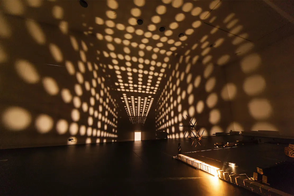 同作は、約10年前からクワクボが取り組んできた、小さな光源を積んだ電車模型の移動と空間内に配置されたさまざまなファウンドオブジェによる影の変化を生かしたシリーズ。越後妻有里山現代美術館MonETに常設展示されてきた《LOST #6》では、新潟県十日町で使われてきた織物機具の一部や農機具などが素材となり、サイトスペシフィックなインスタレーションとして人気を集めてきた。