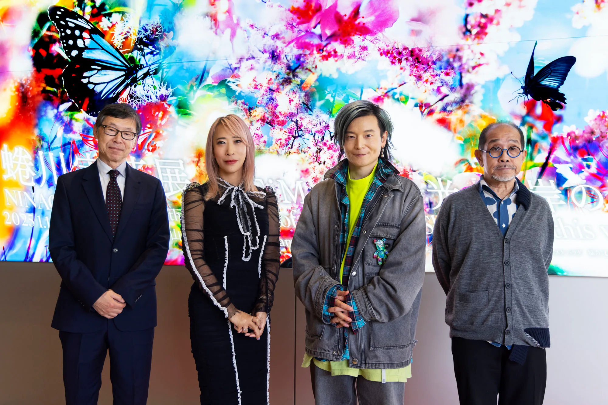 蜷川は「京都でやるということが今回のテーマ設定に深く関わっていて、京都に来て感じたことやこの土地の持っている歴史、そのなかにゆらめく命や生と死などを作品に入れたいというところから始まりました。暑い夏にチームで京都を回って街を体感したのですが、どこかにポカンと異界につながる穴があるような不思議な探索でした。生と死、彼岸と此岸、光と影など相対するものがゆらめきながら重なる瞬間などに執着して作ってきたので、そういったものが体感できる没入型の展覧会になっていると思います」と京都で行う展覧会に込めた思いを説明。