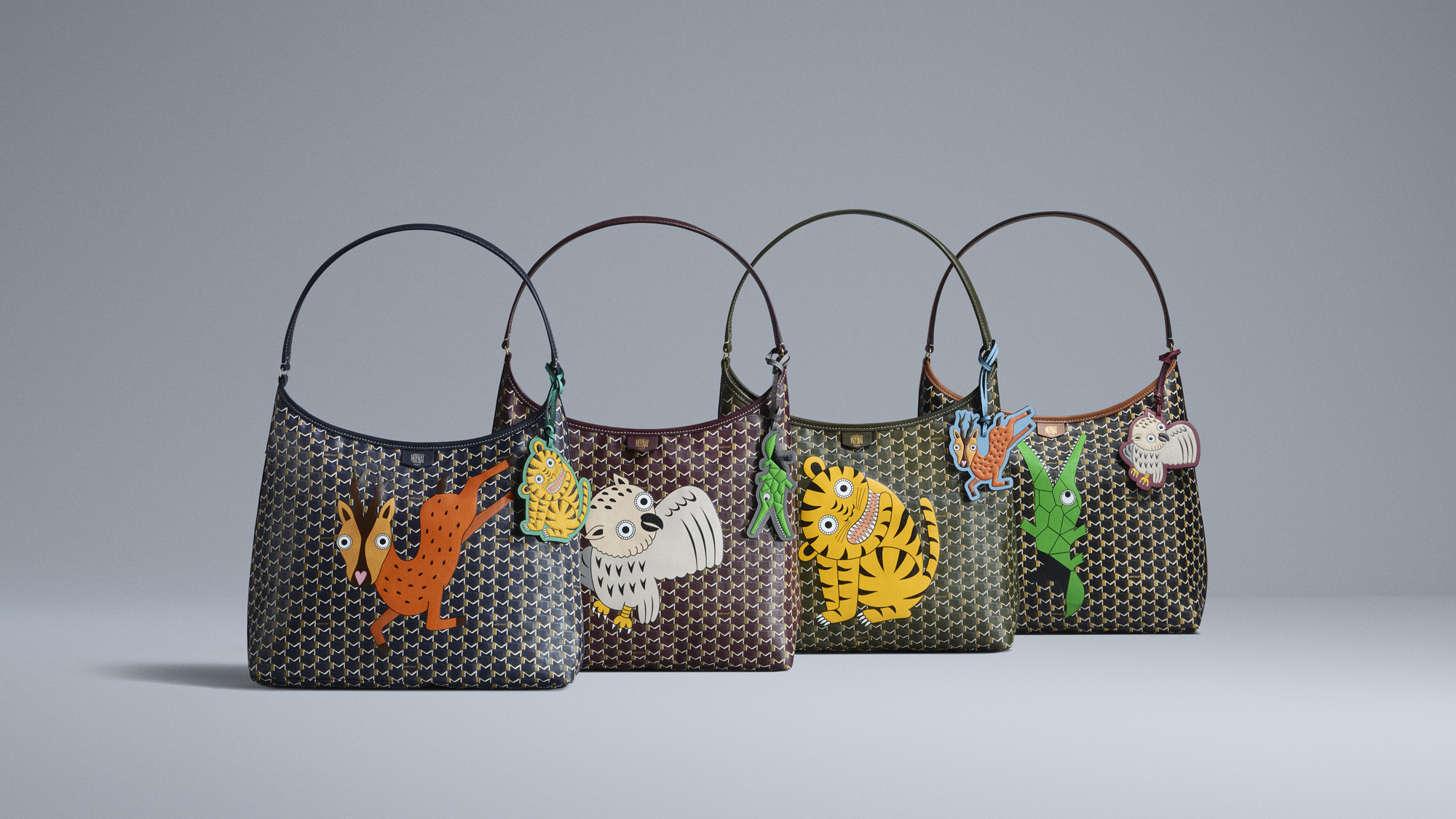また「Holiday 2025 コレクション」では、永井氏の「LIFE」シリーズをもとにした動物モチーフを、トートやホーボーバッグ、カードケースなどにデザイン。クラシックなブラウンに加え、バーガンディ、カーキ、ネイビーなどの新色も登場する。