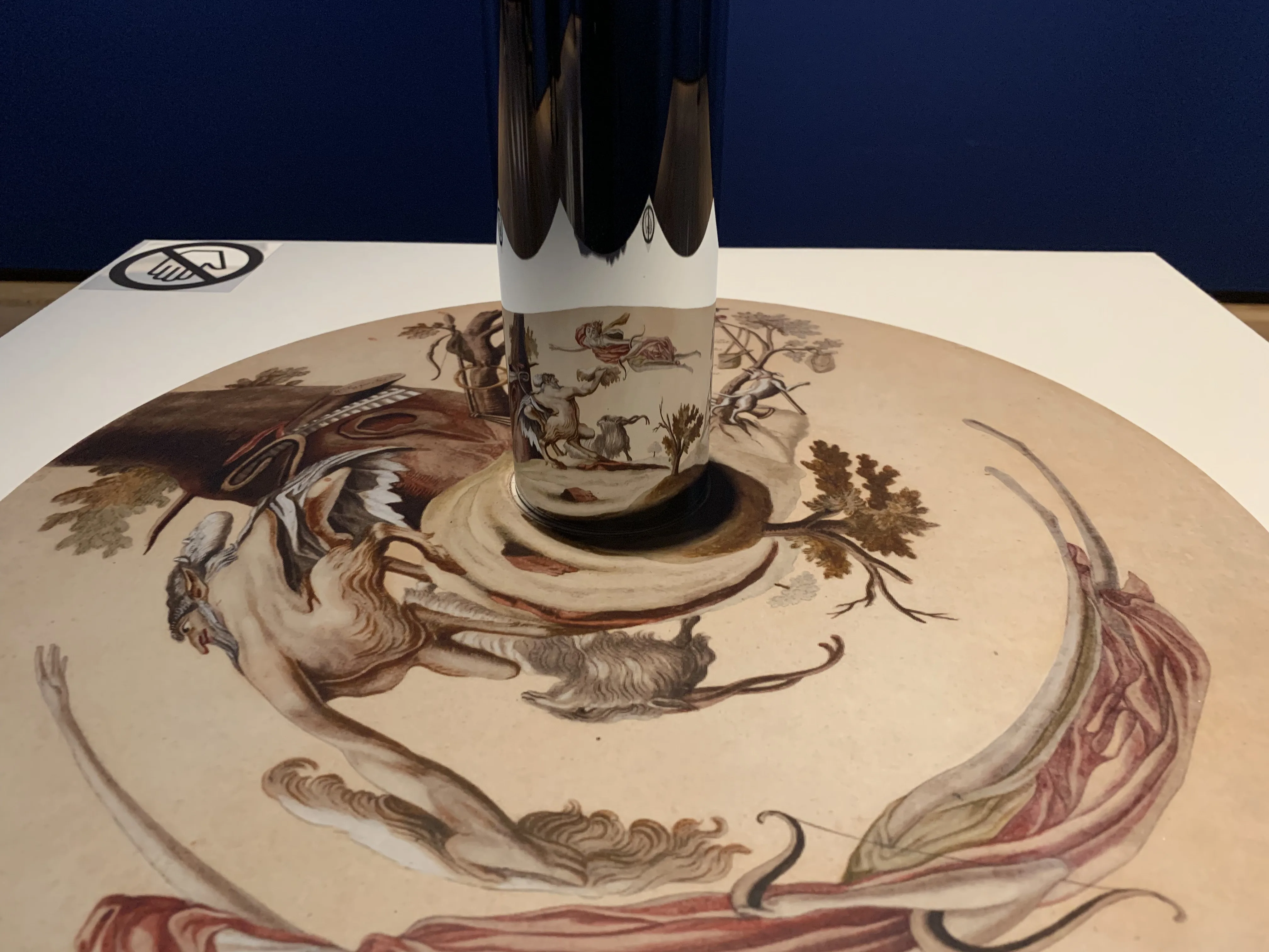 2022年4月現在、4500点を超えるという同館の版画コレクション。本展は2015年以降の新規収蔵品によって構成される。アルブレヒト・デューラーやレンブラント・ファン・レインなど巨匠や、近年重要作品を取得しているフランシスコ・デ・ゴヤやエドゥアール・マネのほか、デザイン案やアナモルフォーズ(歪像)といった趣向の異なる作品も展示される。アナモルフォーズとは、特定の視点や器具を使うことで正しい像を見ることができる作品のこと。クリスティアン・ハインリヒ・ヴェングの円形絵画《アナモルフォーズ:ルナをアルカディアへ誘うパン》(1753頃)は円筒に映すことで、一般的な絵画の縮尺で見ることが可能だ。