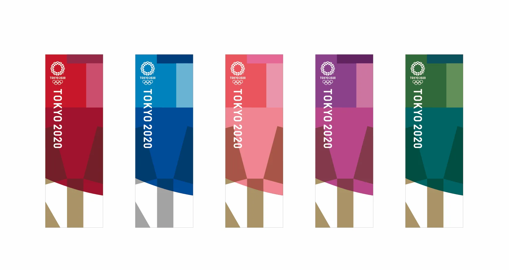 エンブレムとは別に東京大会のデザインの基本となる「コアグラフィックス」が発表されたのが、2018年の8月。これは十二単の「かさねの色目」をモチーフとし、5色(藍、紅、桜、藤、松葉)6段階のバリエーションで(*10)、組織委員会デザインディレクターの沢田耕一らが制作した(*11)。競技会場で見られたカラフルな装飾(大会ルック)は、このコアグラフィックスを用いたものである。