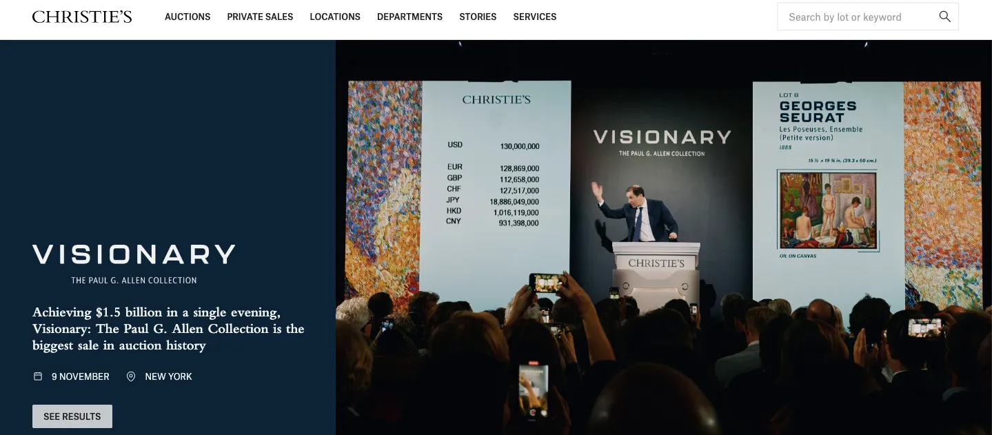事前に開催されたコレクション展に2万人が来場するなど、話題の大きかった今回のコレクション。今後開催される「Visionary: The Paul G. Allen Collection Part II」の結果も楽しみだ。