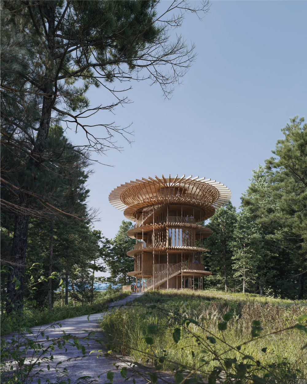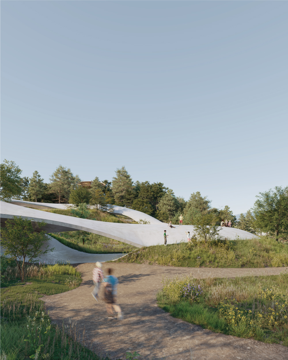 「フォレストエリア」では、リナ・ゴットメ・アーキテクチャが展望台を設計。鳥や虫の視点で自然を観察できる構造を通して、探究心を育む空間を演出する。
