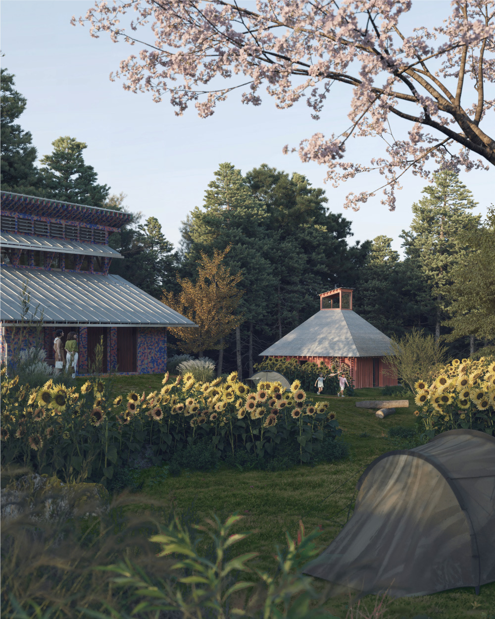 イギリスの建築家コレクティヴ、アセンブル(Assemble)は新しいキャンプサイトを演出。水田の地形を活かし、農業や工芸、地域の自然文化を体験できる教育的アウトドア空間では、自然との関わり方を学ぶことができる。