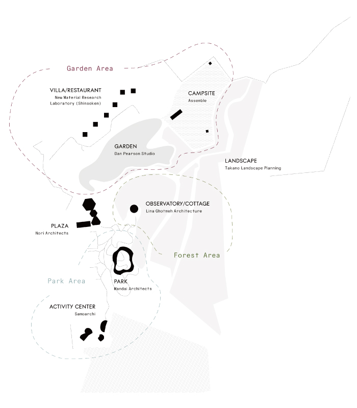 敷地内には、自然との共生をテーマにした6つの建築も登場し、それぞれが異なるアプローチで「自然と生きる」ことを提示する。