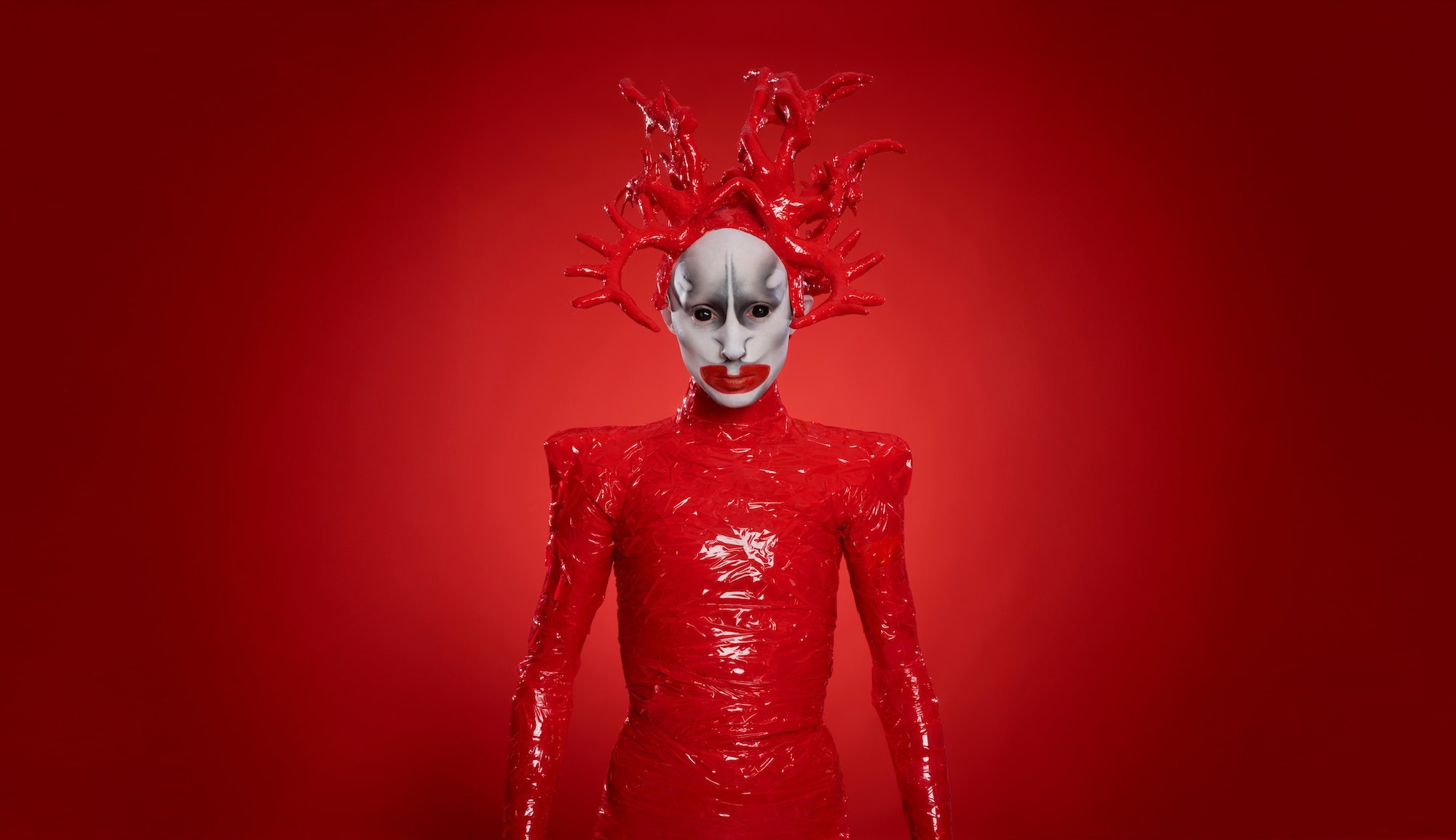 ロシアにおいて、LGBTQ+の当事者たちは日常的に危険にさらされており、ただ道を歩くだけで怒鳴られたり、殴られたりすることすらあるのが現状だ。本作でジェナは、スキンヘッドにハイヒール、身体を締め上げるテープや有刺鉄線をまとった“クリーチャー”のような出立で街に立ち、無言のパフォーマンスによって抗議の声を上げる。その姿は、言葉を超えた意思表明として強烈な印象を残す。
