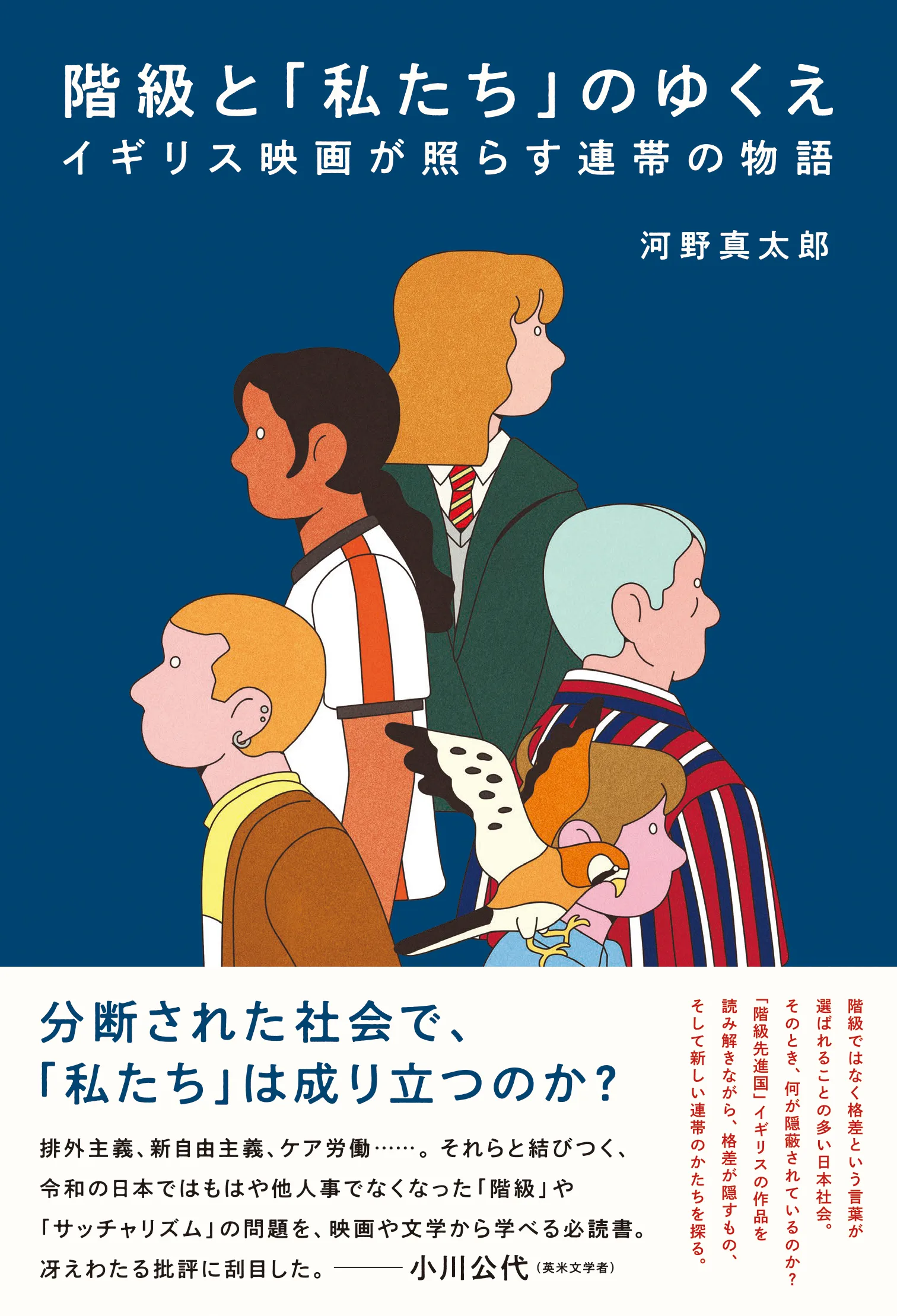 日本社会で使われる「格差」という言葉——そこに何が隠れているのか。本書はケン・ローチ作品をはじめとするイギリス映画・文学が描く階級の物語を通して、新しい連帯のかたちを探る。イギリスの近・現代史や新自由主義経済下の社会を批判的に読み解き、労働、家族、ギグ・エコノミーといった問題を浮き彫りにしながら、イギリス映画・文学に新しい視座を与える一冊。