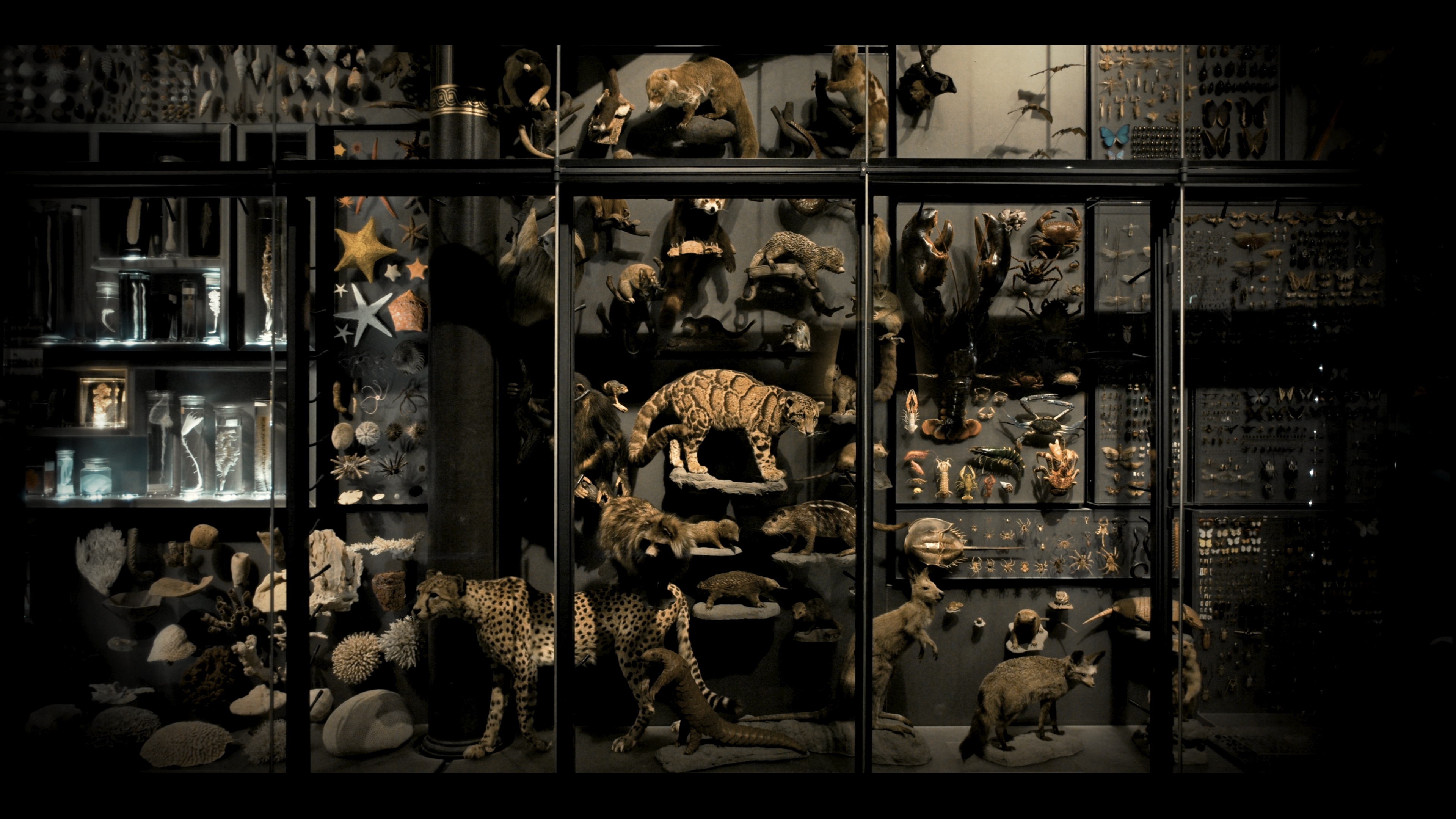 本展のメイン企画として、高谷史郎との共作による巨大インスタレーション作品《async–immersion tokyo》(2024)が公開。坂本が2017年に制作したアルバム『async』(2017)の音楽に合わせ、生前の坂本がスタジオで所有していた楽器や植物、本などを用いた高谷の映像作品が館内の壁面に大きく映し出される。