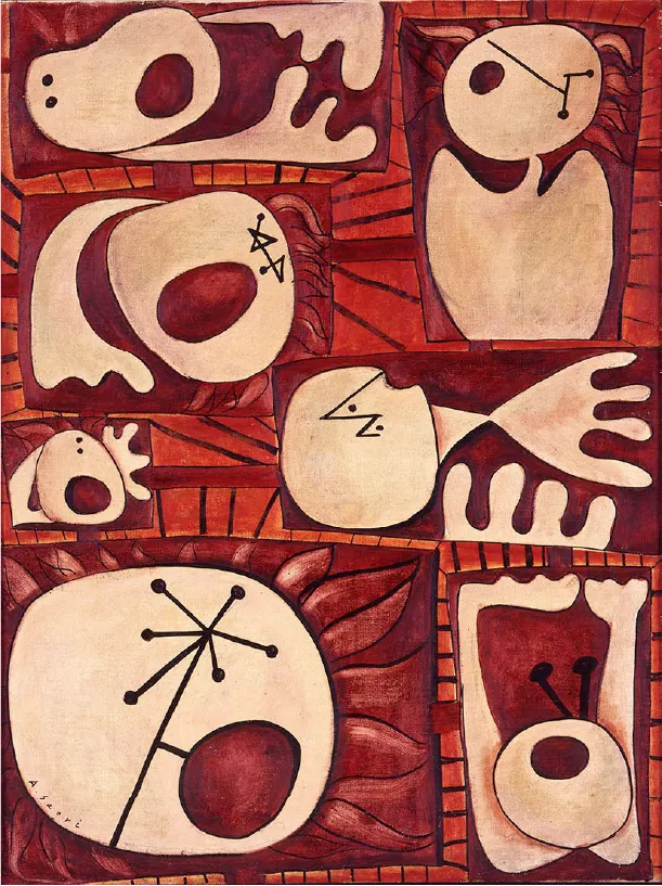 見どころのひとつは、自画像とも言われる「女」シリーズ。画面の中心にひとりの女が立ち、時に叫び、髪を逆立てる女達を芥川(間所)は「女」というタイトルで繰り返し描いている。熱い怒りを強く主張する「女」は当時としては異質な作品で、1955年の二科展で特待賞を受賞するなど前衛作品を描く新人として脚光を浴びた。「女」シリーズの前に立ち、芥川(間所)の内なる声に耳を傾けたい。