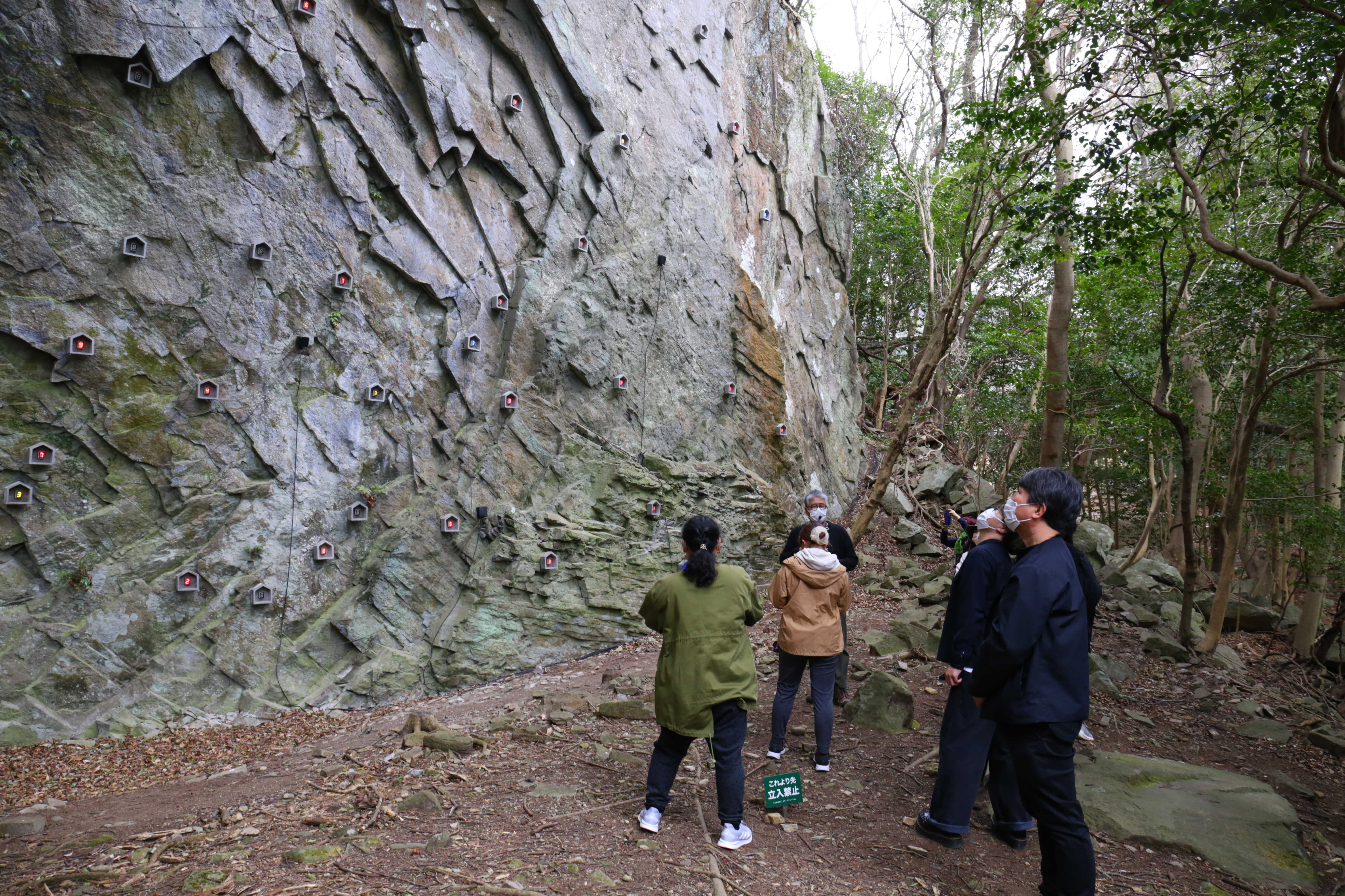 成仏地区の住民41世帯、そして日中韓の学生など若者59人でつくられた同作は、地域の力がなければ決して実現しなかったプロジェクトである。広い壁面に設置したいという作家のリクエストに応えて、この岩壁を探し出した国東市の職員。昭和45年の発掘調査で、岩壁下に広がる土地が縄文時代からの住居跡だと知りつつも、「現代アートがやって来ることで地域が変わるかもしれない」と受け入れた住民。そして脆い岩肌を剥落させることなく工事を成し遂げた地元の電気工。この土地の歴史と特性を熟知している人たちの知と手があって、《Hundred Life Houses》は生まれることができたのだ。