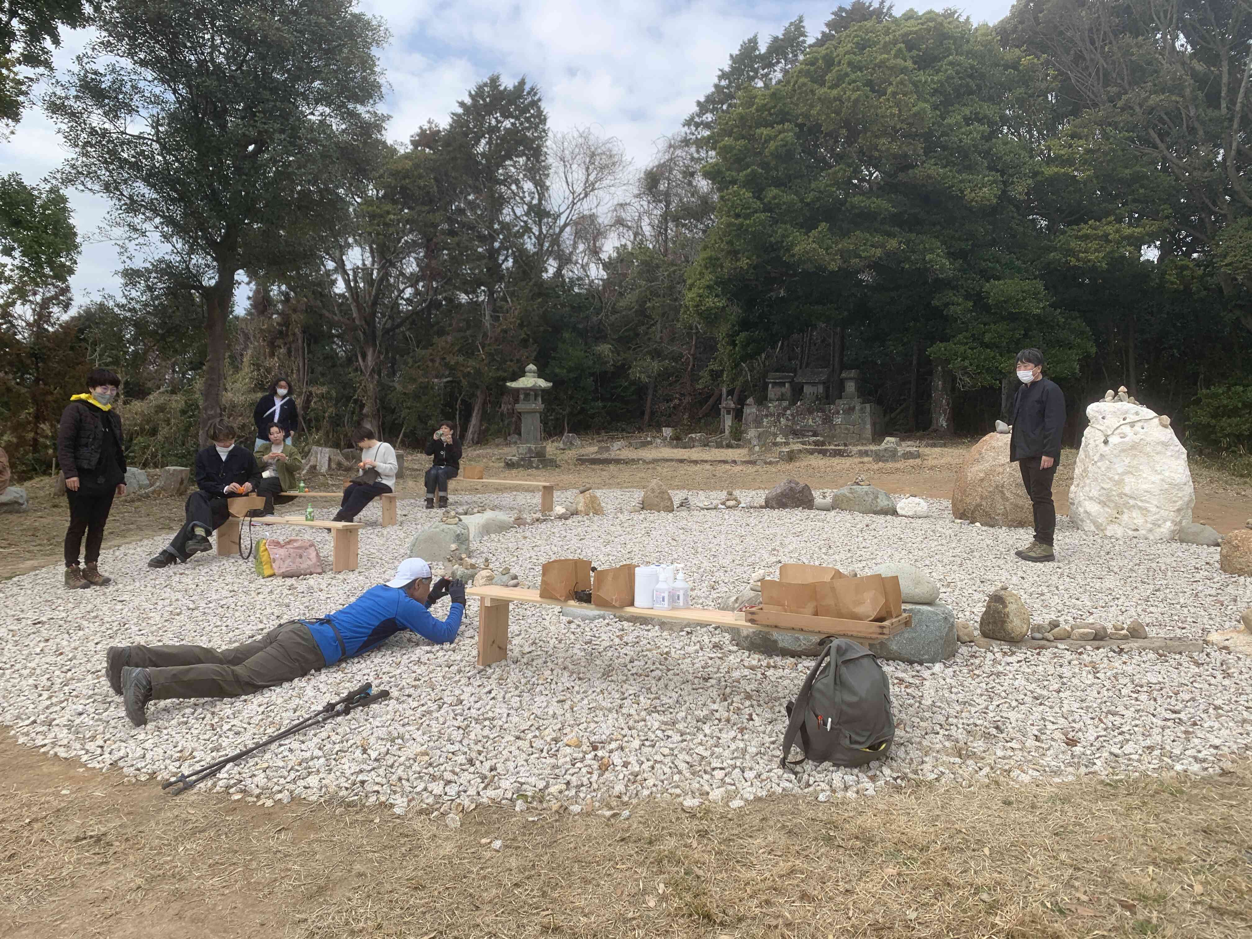 実際、ここで一同が早い昼食を食べていると、登山を趣味とするおじさんが現れて石を置いていくという一幕も(ツアーではいくつかの演出的仕込みがあったのだが、この登場はまったくの偶然!)。彼にとっては、ここは登るべき山であって、アートであるという認識は強くないはずだが、そのような複数の異なる認識がいっとき結ばれたりするのが、混ざり合う文化の醍醐味だ。