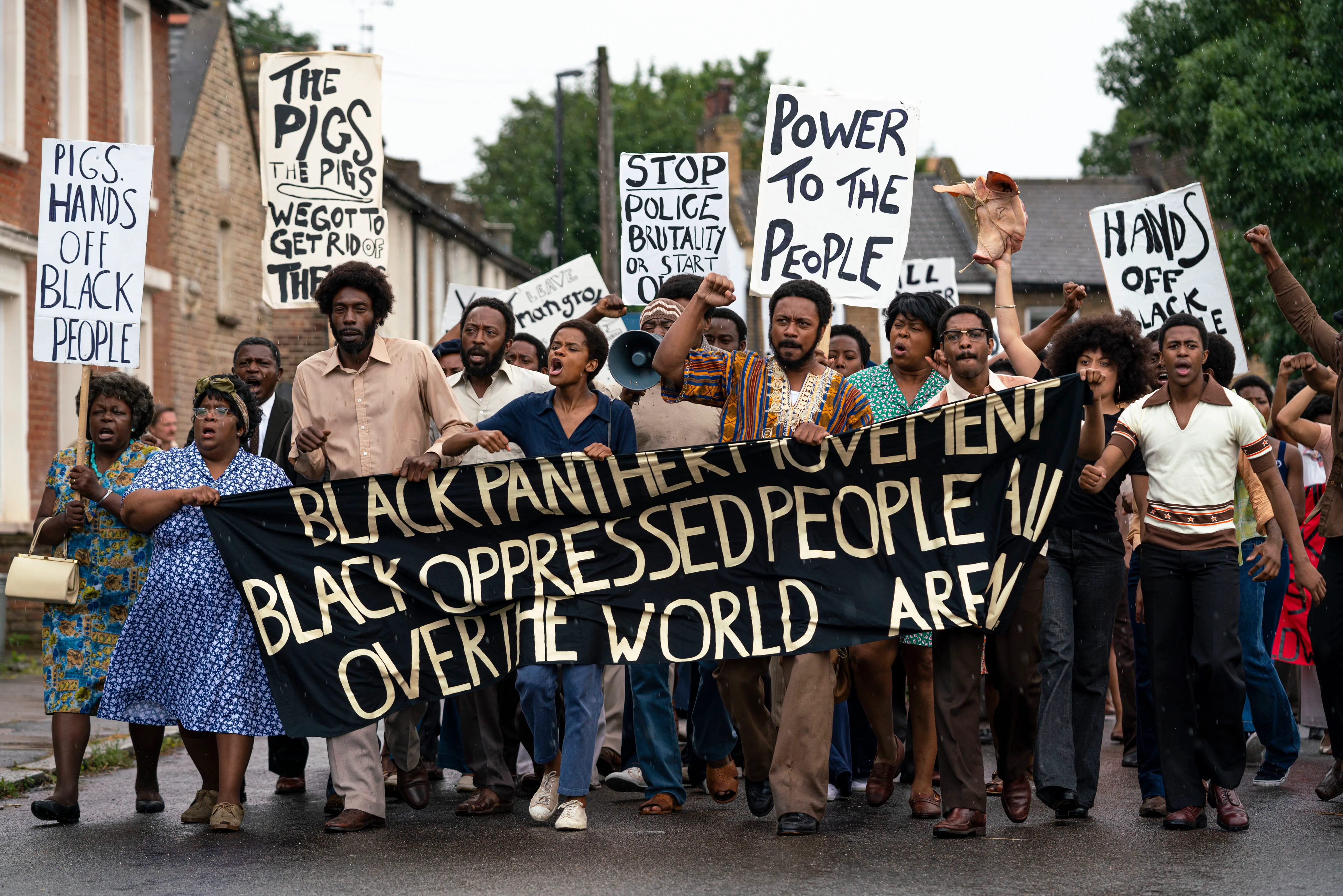 革命についての語りにおいて、しばしば女性たちは周縁に追いやられてしまう。たとえばイギリスのブラック・パンサー党を描いた2017年のドラマ『ゲリラ』(Guerrilla)は、『マングローブ』にも登場するアルシア・ジョーンズ=ルコワントなどの女性活動家の役割をじゅうぶんに描いていないと指摘された(*6)。 それに対して『スモール・アックス』には、そうした男性中心の歴史語りを問い直そうという意図も読み取ることができる。