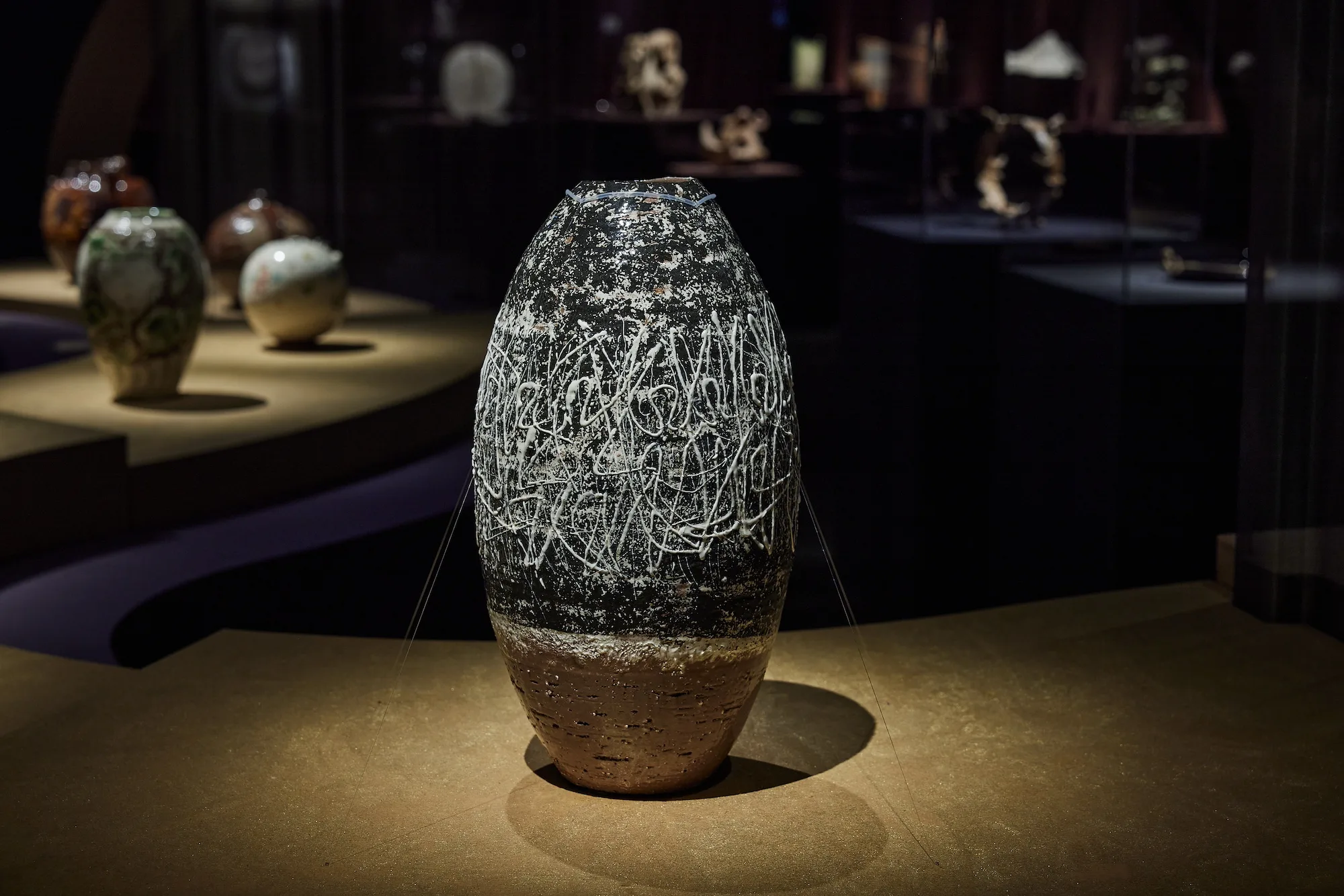 走泥社の名前は、中国の均窯の釉に見られる「蚯蚓走泥文(きゅういんそうでいもん)」というミミズが泥を這った跡のような曲線状の模様に由来しますが、走泥社の初期の制作は、技術そのものは中国・朝鮮に由来する伝統的な陶芸の方法を土台にしながら、同時代の美術表現からの影響が窺えます。