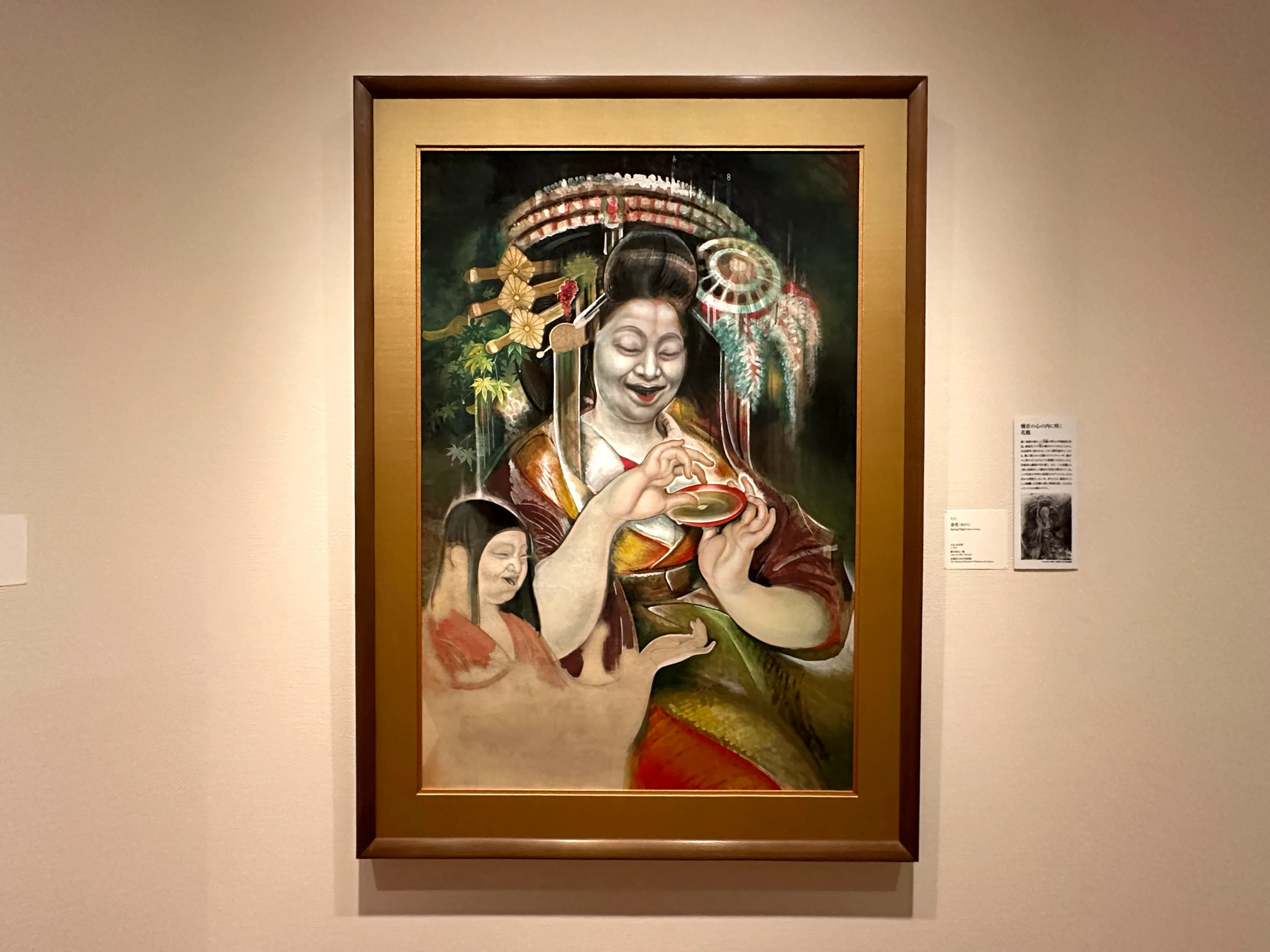 大正期から昭和初期にかけて日本画家として活動した甲斐荘楠音(かいのしょう・ただおと)は、革新的な日本画表現を世に問うた「国画創作協会」の一員として意欲的な作品を次々と発表し、話題になった。しかし閉鎖的な画壇への違和感、また幼い頃から親しんだ舞台芸術、その延長としての映画制作への関心から、かれは日本画の世界を離れて商業的分野へと表現の場を広げていくことになる。本展では、起点である画家としての楠音、その研鑽のなかで異性装に関心を向ける楠音、映画での衣裳・風俗考証に奮闘する楠音など、様々な個性を紹介している。