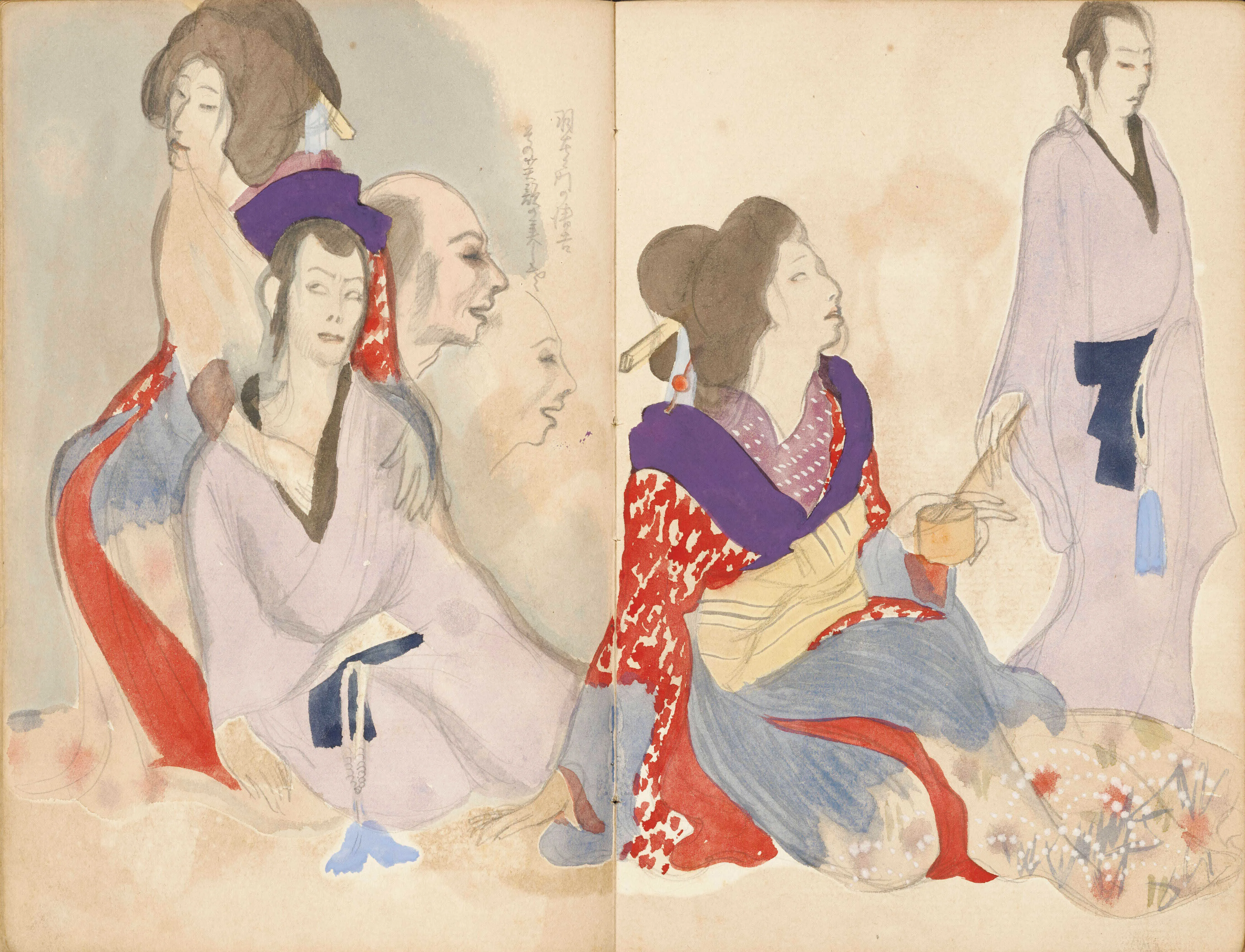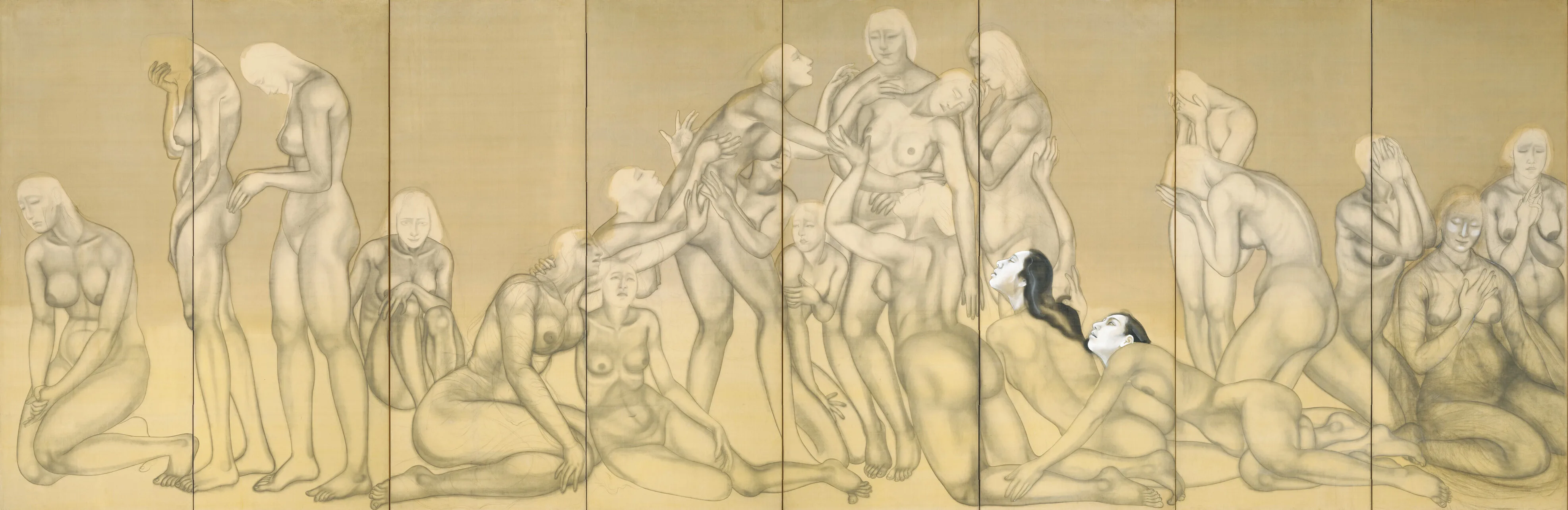 展示では、舞や歌舞伎からインスピレーションを受けていたことのわかる丹念なスケッチやスクラップブック、名優・市川右太衛門とともに作り上げることになる「旗本退屈男」シリーズの豪華衣裳、そしてかれが活動の場とした絵画団体「新樹社」の第1回展覧会に出品した意欲作《春》がはるばるニューヨークから凱旋、『雨月物語』(溝口健二監督、1953)のために考案し、アカデミー賞衣裳デザイン賞にノミネートされた衣裳も、パリのシネマテーク・フランセーズから海を越えて来日するなど、多くの見どころがある。