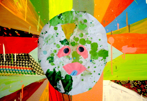 吊し型インスタレーションの下半分。アートフェア東京のディレクター、辛美沙さんが大勢の人をかき分けて部屋の向こう側に渡ろうか考え中。