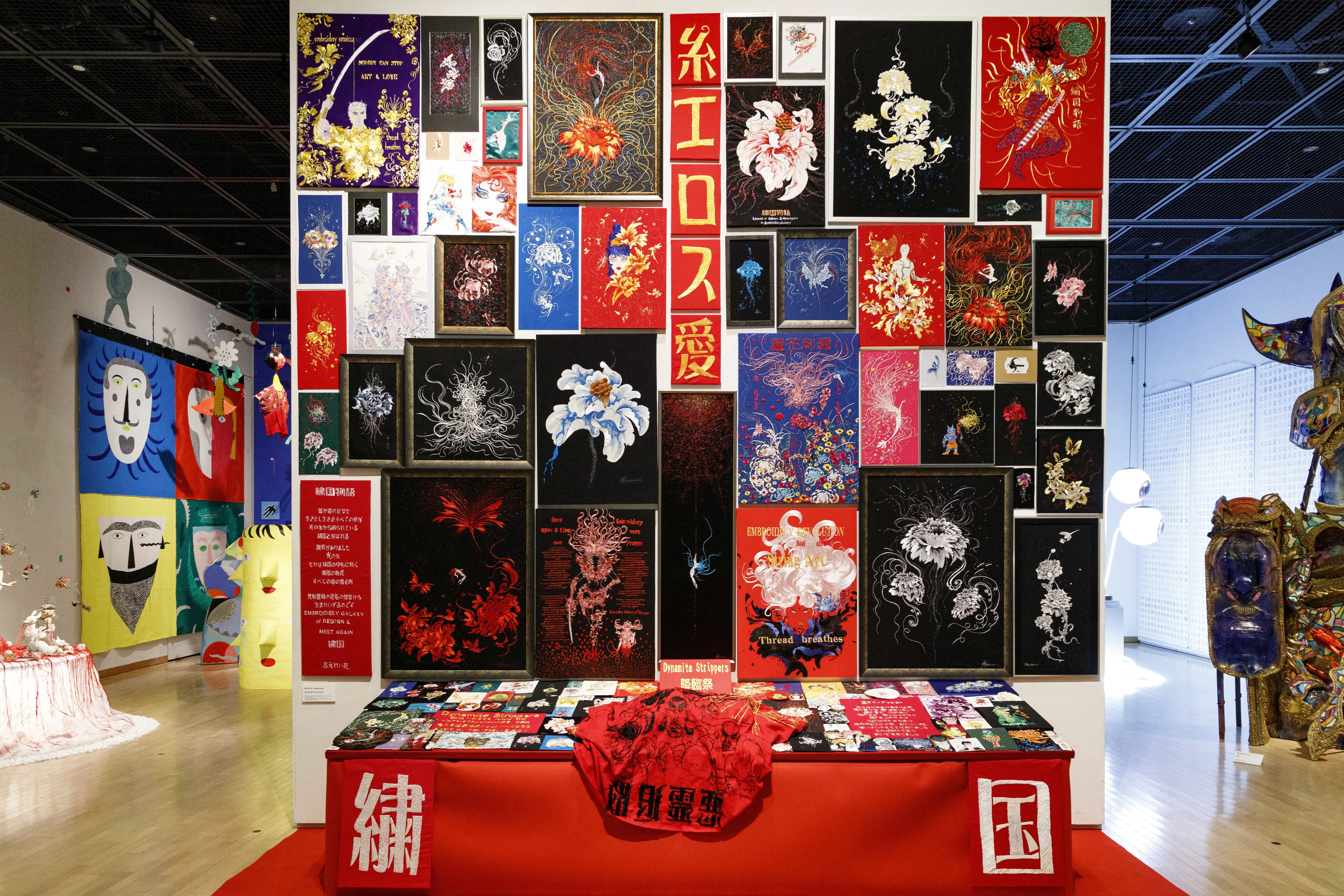 今年、グランプリに相当する岡本太郎賞を獲得したのは今年70歳になる吉元れい花。レビュウダンサーを経て、結婚後に始めた刺繍インスタレーション作品《The thread is Eros, It's love!》が高く評価された。
