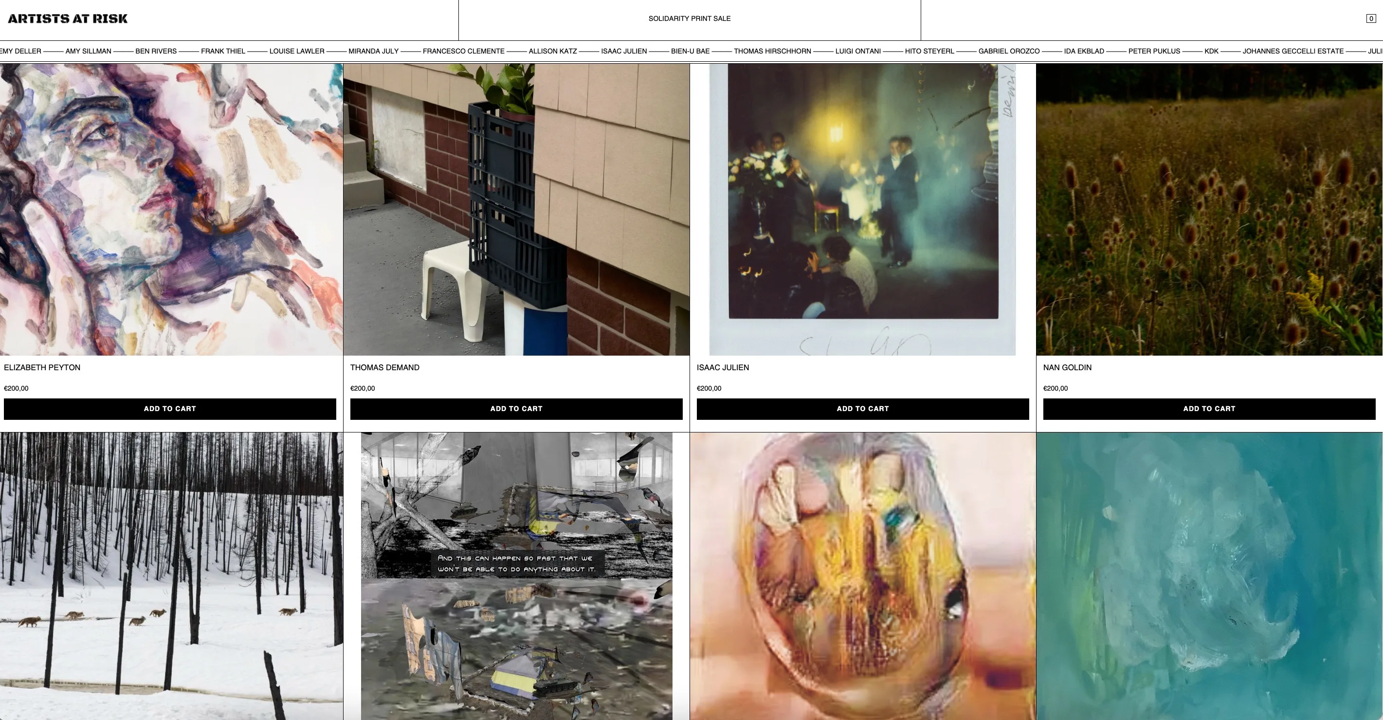 ヨハネスブルグ出身のアダム・ブルームバーグが、人権と芸術を守るNGO団体「Artists at Risk」と協働し、著名アーティストによるウクライナ支援のためのプリント作品の販売を企画した。参加作家には、トーマス・デマンド、ナン・ゴールディン、マシュー・バーニー、ヒト・シュタイエル、ピエール・ユイグなど、国際的な作家たち40組が揃った。一律200ユーロのプリントは、同プロジェクトのウェブサイトで2022年4月30日まで購入できる。詳細はこちらをチェック。