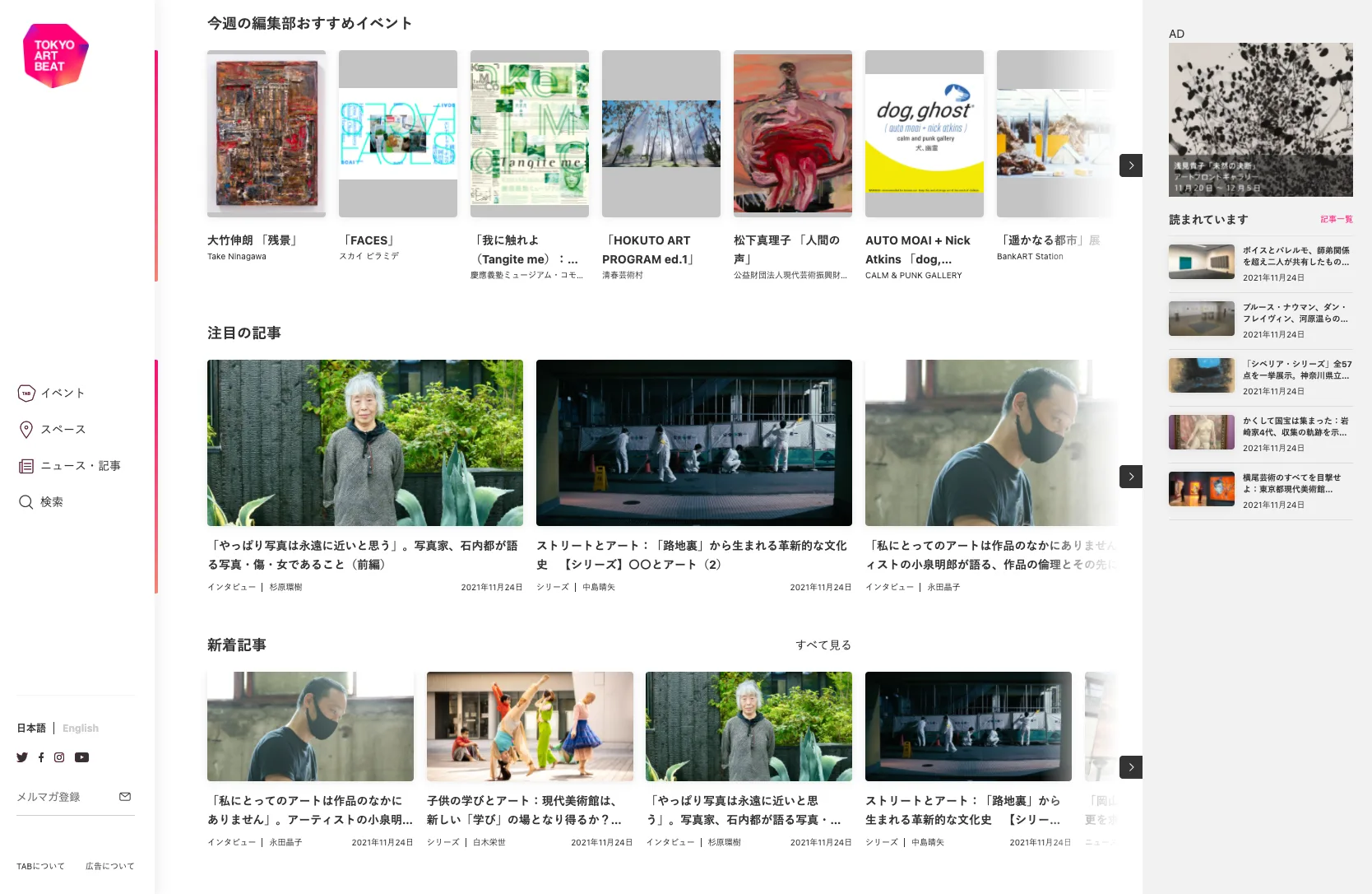 Tokyo Art Beatは2004年創設のアートメディア。これまで、月間平均500件におよぶ日英バイリンガルの展覧会情報と、最新のアートニュースを発信してきました。2021年11月24日、Tokyo Art Beatはウェブ・アプリの両方をサービス開始以来初めて全面リニューアル。アートをもっと身近に、もっと深く知るために生まれ変わりました。