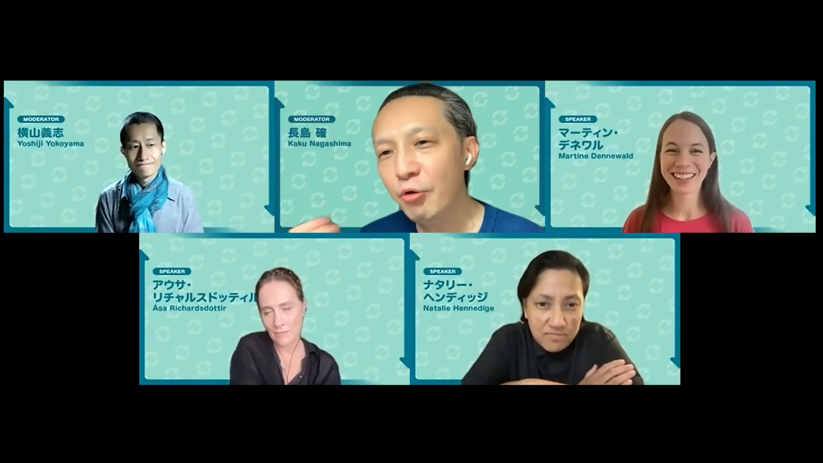 最後に同シリーズのシンポジウムをもうひとつ。「芸能者はこれからも旅をするのか? ~コロナ後の国際舞台芸術祭における環境と南北問題~」では、COVID-19の世界的感染拡大によって厳しく制限された国境をまたいでの移動、それと同時に盛んになったオンラインでの国際交流を振り返り、移動・物流の環境負荷やリスク、経済や文化の南北格差の固定化などを議論した。登壇者はアウサ・リカルスドッティル(IETM事務局長、「パフォーム・ヨーロッパ」コンソーシアム議長)、マーティン・デネワル(フェスティバル・トランスアメリーク共同芸術監督)、ナタリー・ヘネディゲ(シンガポール国際芸術祭ディレクター)。モデレーターは前述した横山のほかに、長島確(東京芸術祭FTレーベルプログラムディレクター・ファーム共同ディレクター)が務めている。
