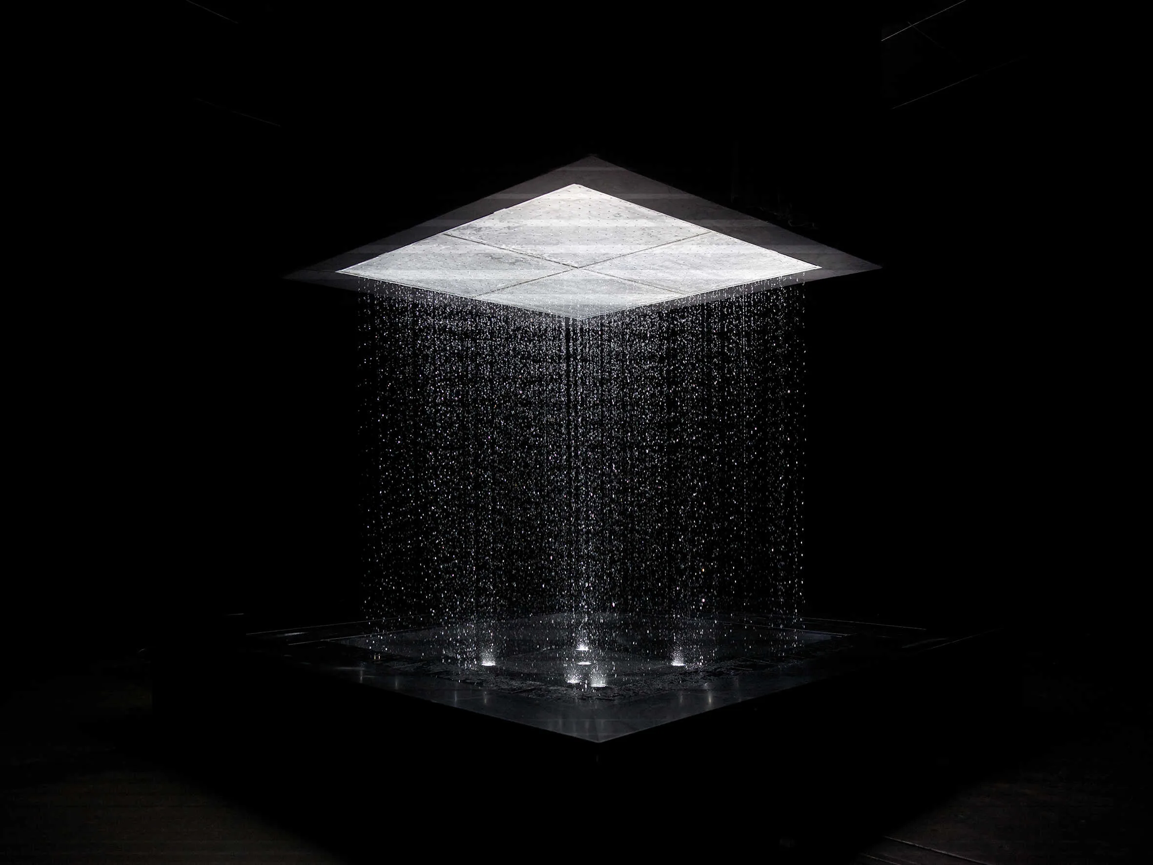 *1──《3D Water Matrix》は高谷史郎の発案で制作された装置で、この装置を使って高谷の《ST\LL》とクリスチャン・パトロスの《魔法使いの弟子》(ともに2014)が展示された。《ST\LL》は、水滴の落下速度とストロボ光の明滅を緻密に同期させることで、無数の水滴が空中で静止したり回転したり上昇したりしているように見せる作品。水滴を落下させるバルブの開閉とストロボの明滅を同期させるプログラムは古舘健が担当した。