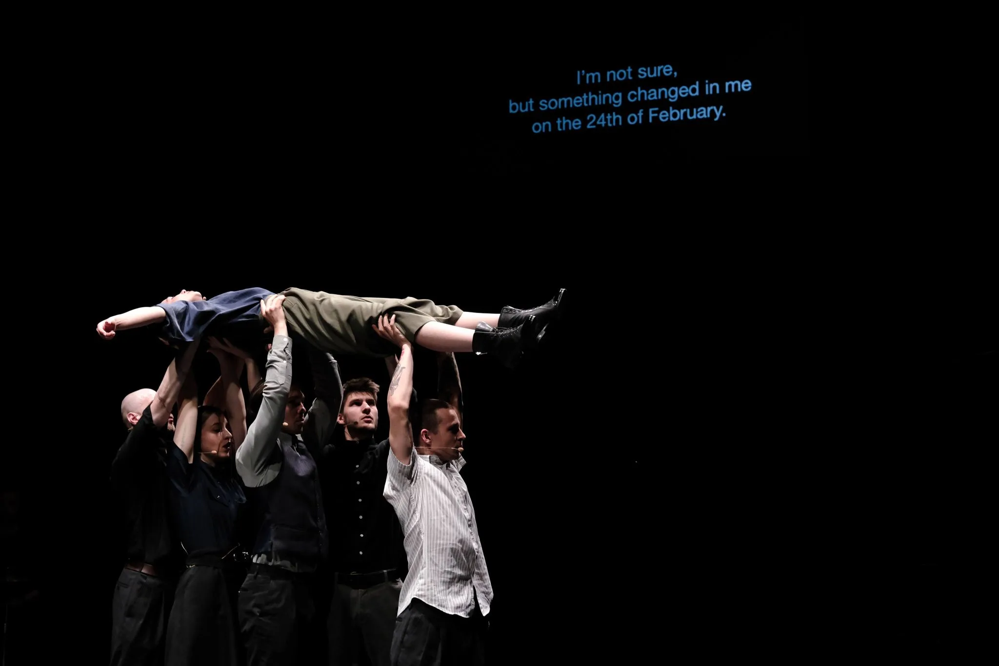 ウクライナからの「10の出会い」への参加ということでは、フーリガン・アート・コミュニティがキーウのシェルター避難中に発想したという『塹壕キャバレー』や、リヴィウのTeatr Vartaによる『ЛЮТИЙ(Liutyy) | FebrUaRY』の上演があった。後者の題名はウクライナ語でロシアが侵攻した「2月」と「激怒という感情」を表す語である。戦争に参加している兵士やボランティアの人たちのインタビューや出演しているアーティスト自身のコメンタリーをちりばめた音楽劇である。