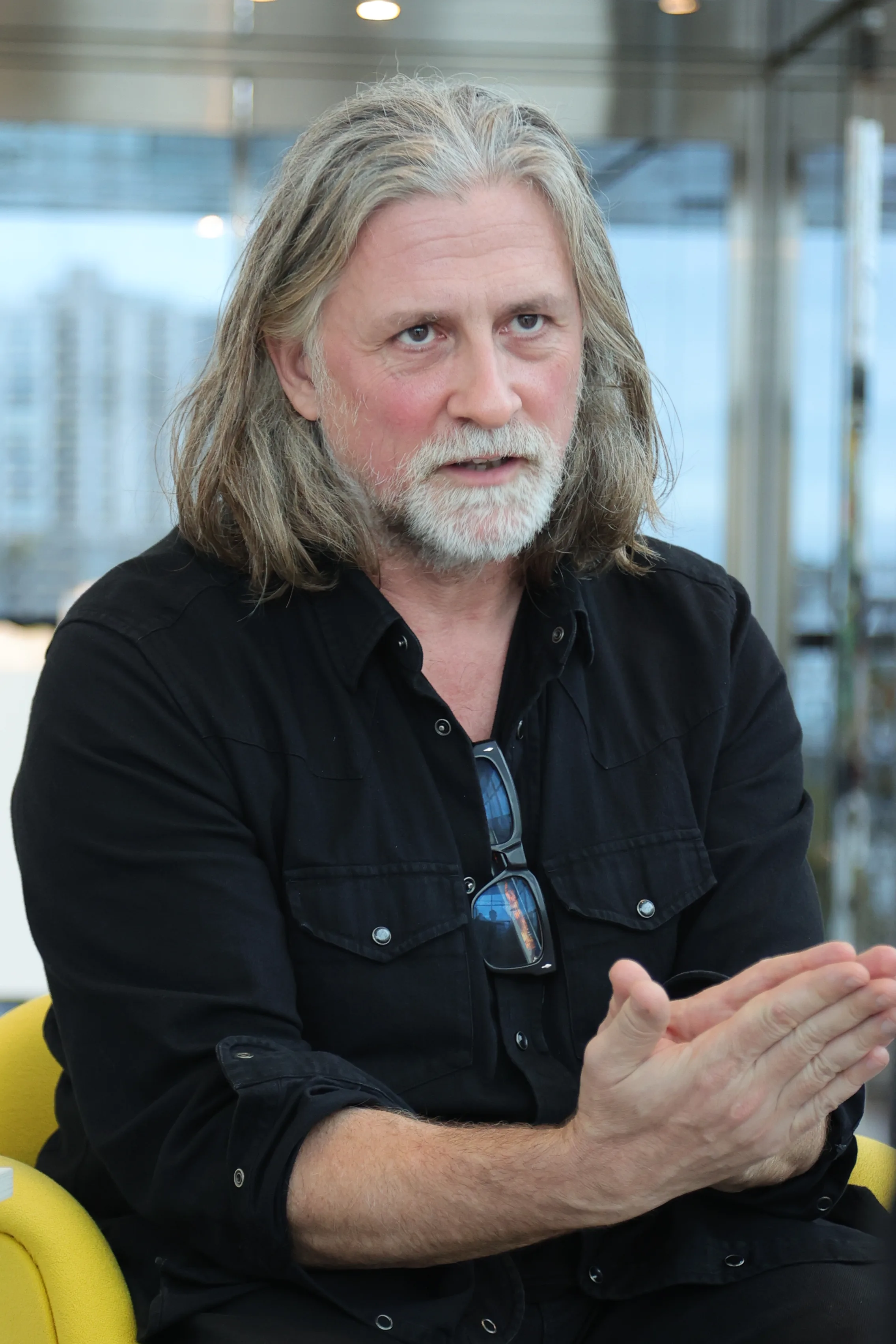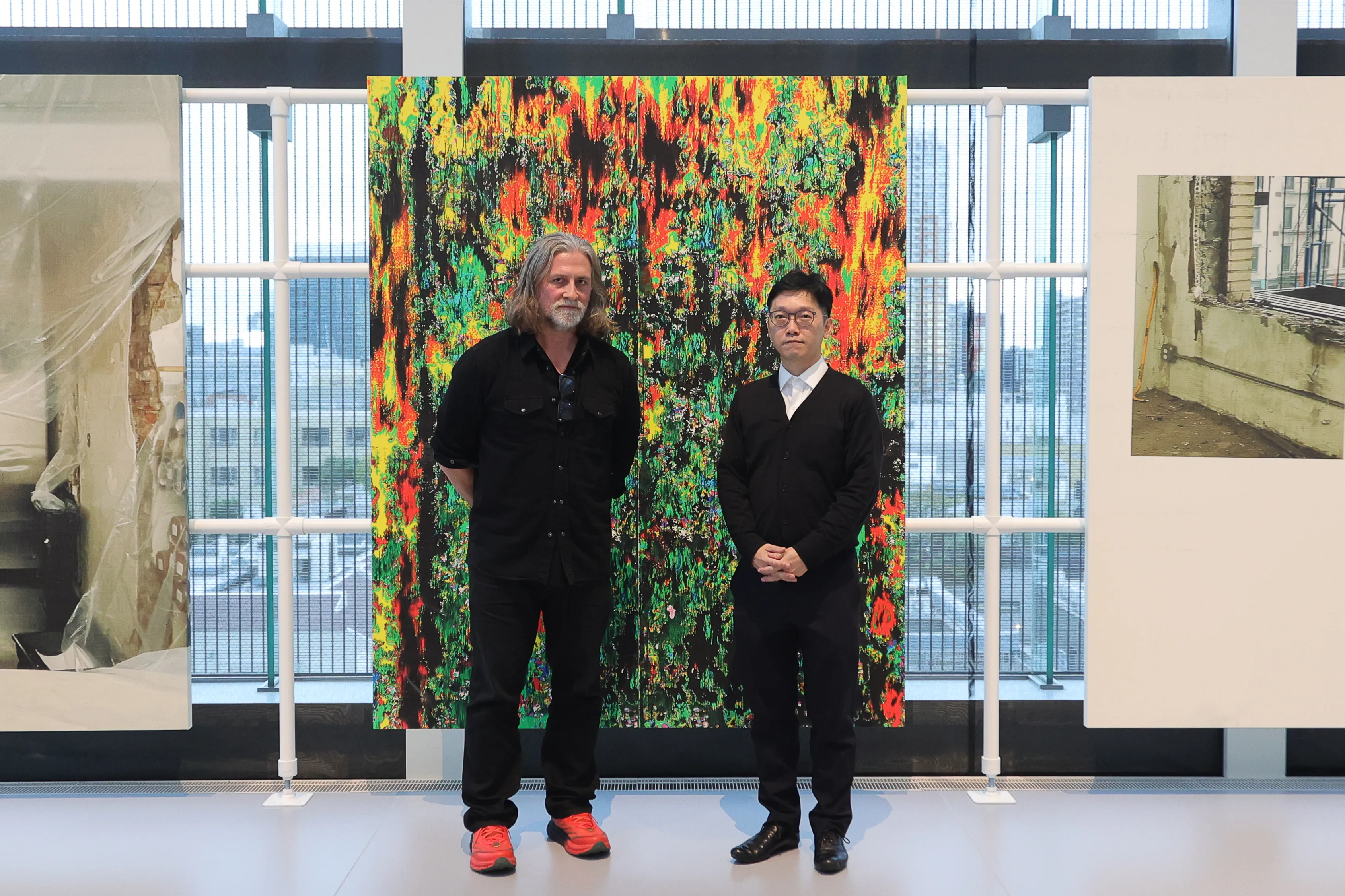 本展はフォンダシオン ルイ・ヴィトンの所蔵コレクションを公開する「Hors-les-murs(壁を越えて)」プログラムの一環で行われ、会場では2022年に制作された13点の大判絵画からなる《Untitled》(2022)を世界初公開している。壁を設けない特徴的な会場構成を採用した意図や、作品に通底する思考とは何か。展示にあわせて来日したガイトンに、東京国立近代美術館研究員である桝田倫広が話を聞いた。