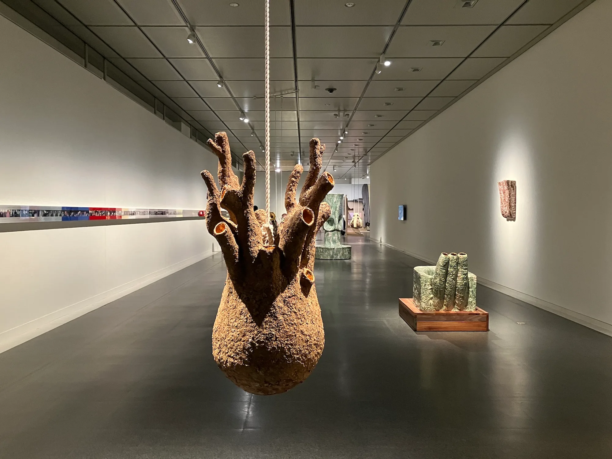 会場風景より、手前から、石原友明《世界。》(1996)、小谷元彦《Phantom-Limb》(1997)